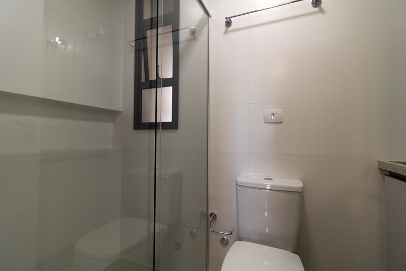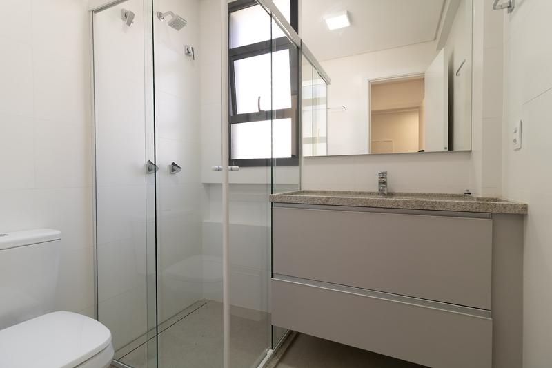 02 Banheiros completos, ambos com armário, espelho, box em vidro e ducha a gás – sendo um banheiro social e outro na suíte.