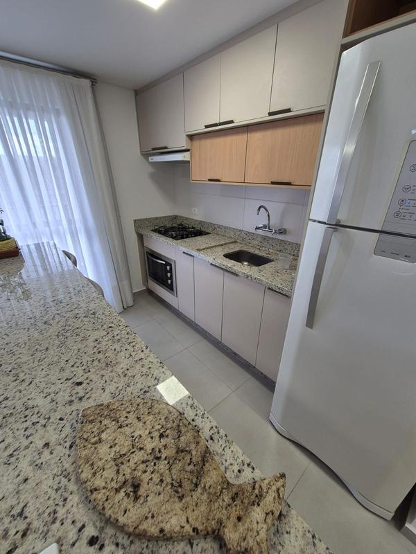 Cozinha totalmente equipada, com cooktop, forno, lava louças, micro-ondas, máquina de lavar, filtro de água.