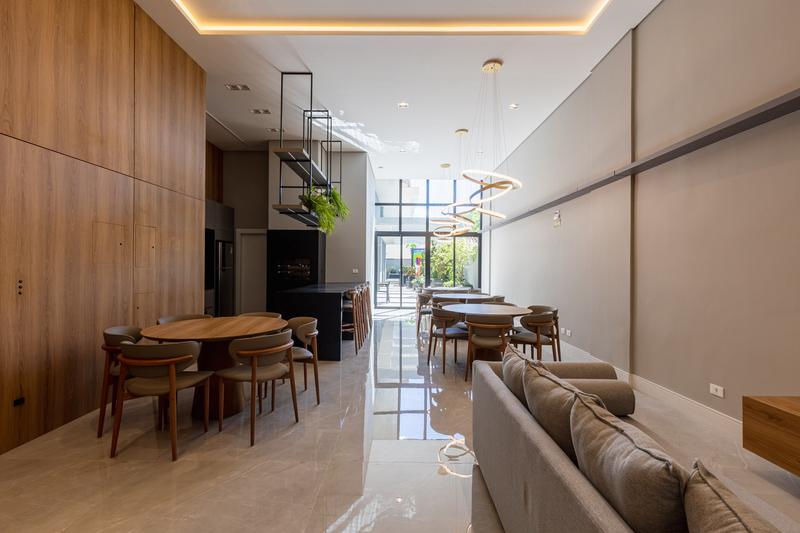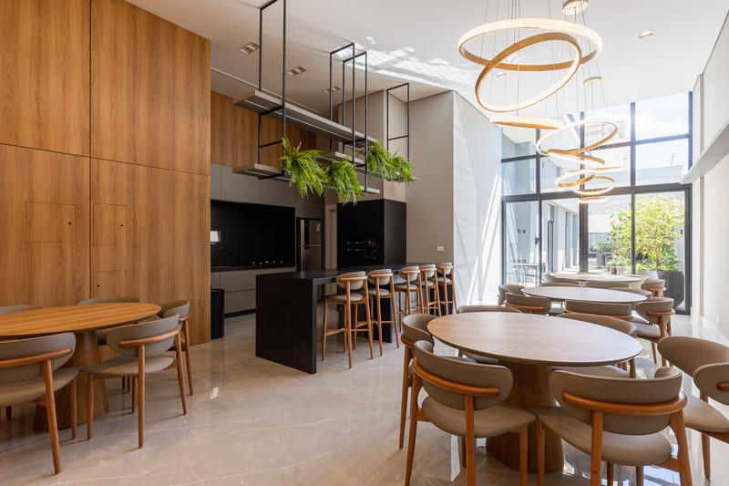 Espaço office e salão de festas para demandas profissionais e sociais integradas