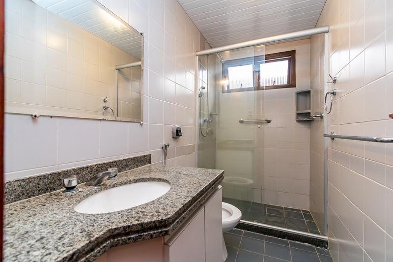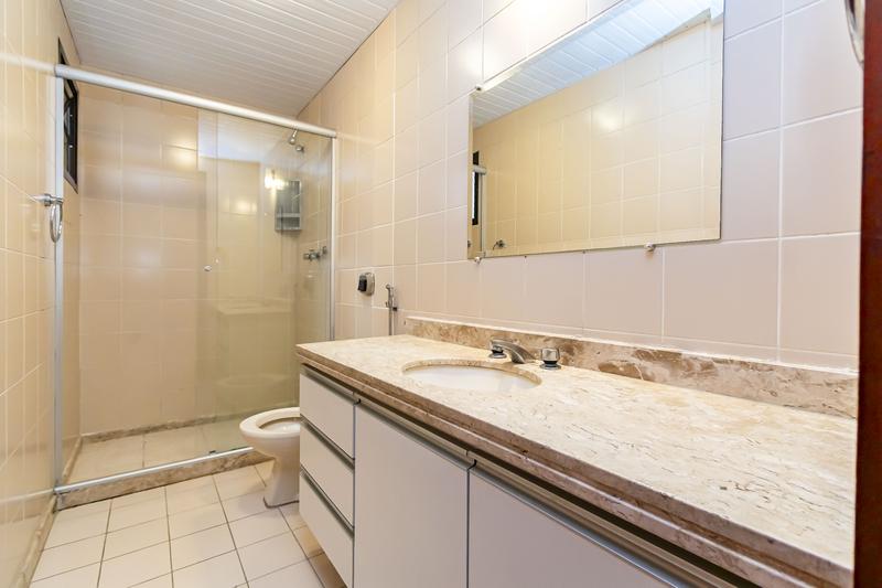 * Bwc Social e suíte com pia em granito armários e box em vidro.