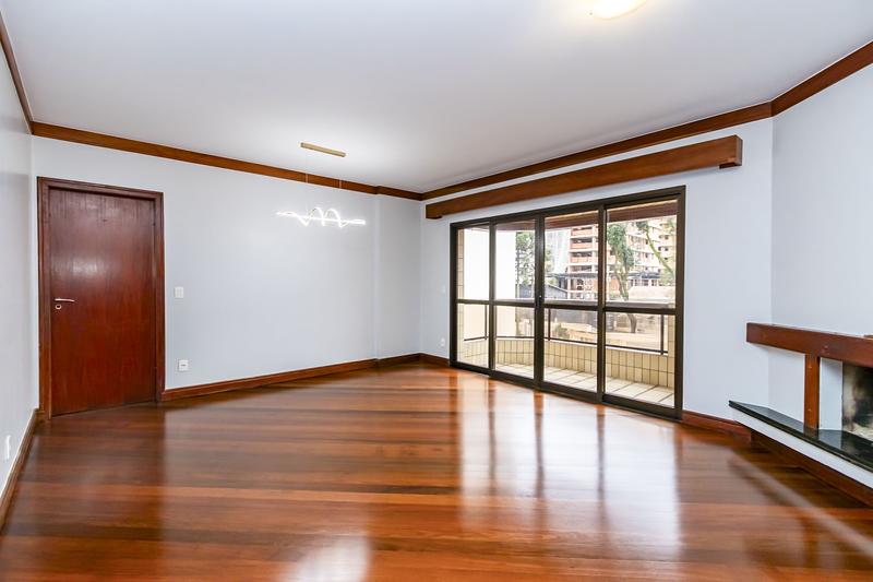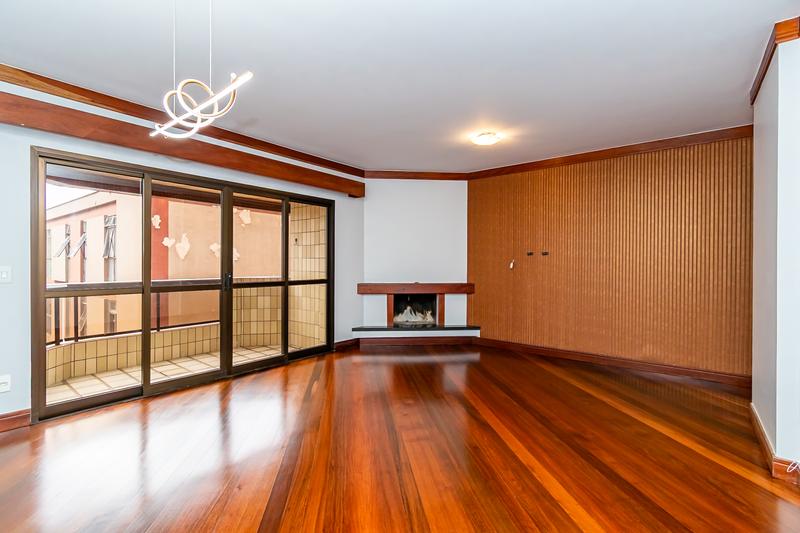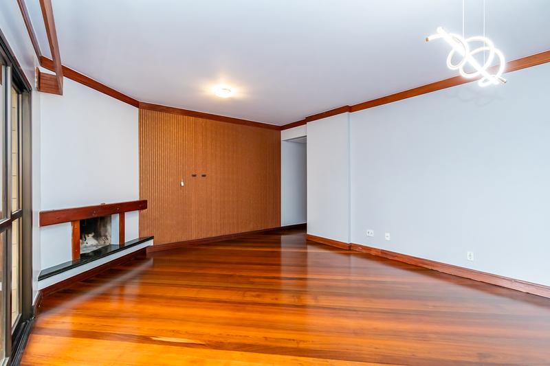 * Sala ampla com lareira, piso em madeira com acesso a sacada.