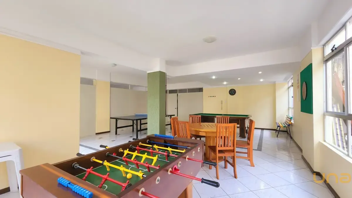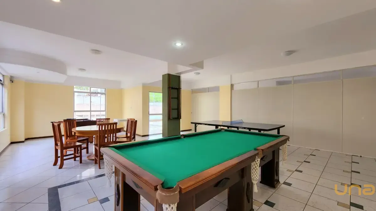 O condomínio conta com portaria 24 horas, salão de festas decorado e com churrasqueira, sala de ginástica equipada, sala de jogos equipado, playground e quadra de esportes.