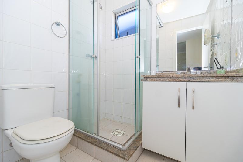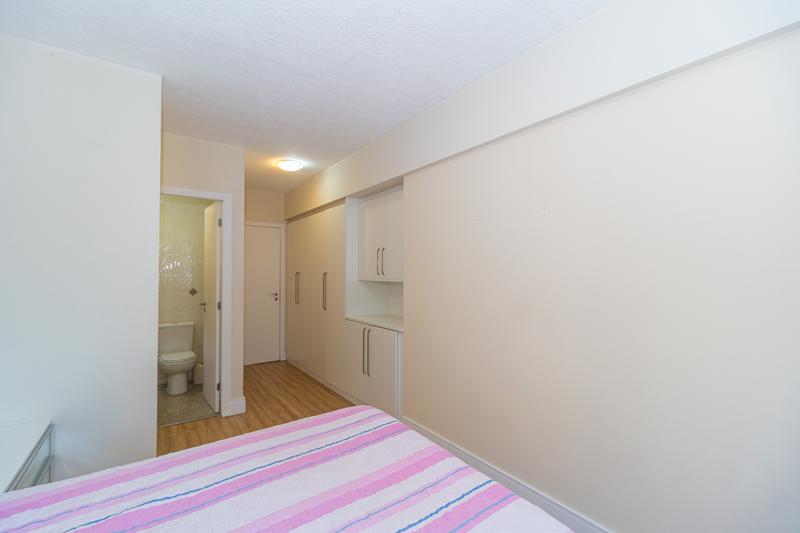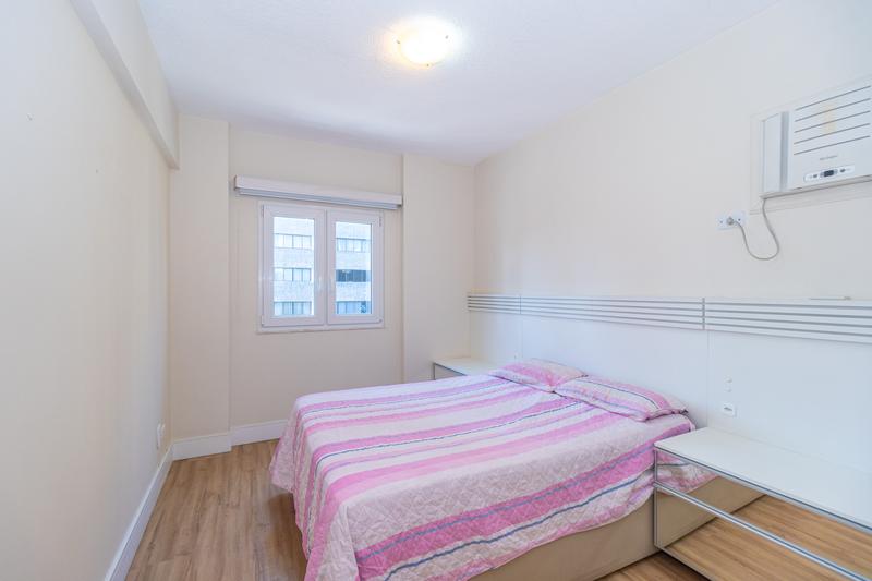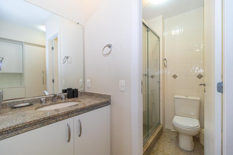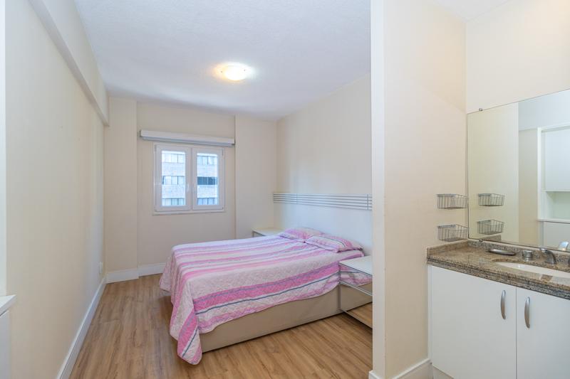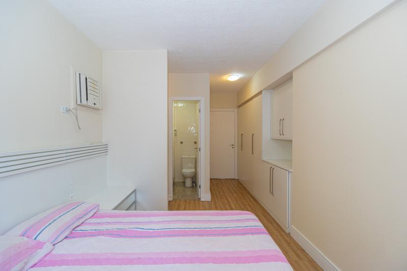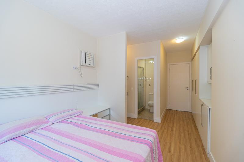 – Quarto com cama de casal, pia com armário, armário embutido, ar condicionado
