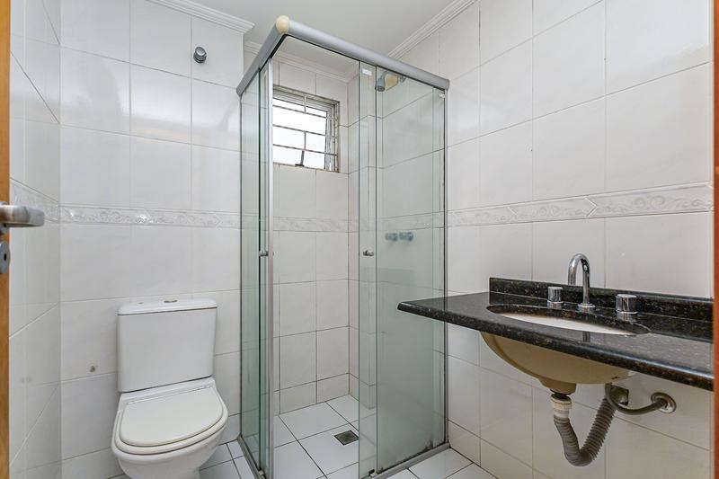 Bwc social com box em vidro e pia em granito;