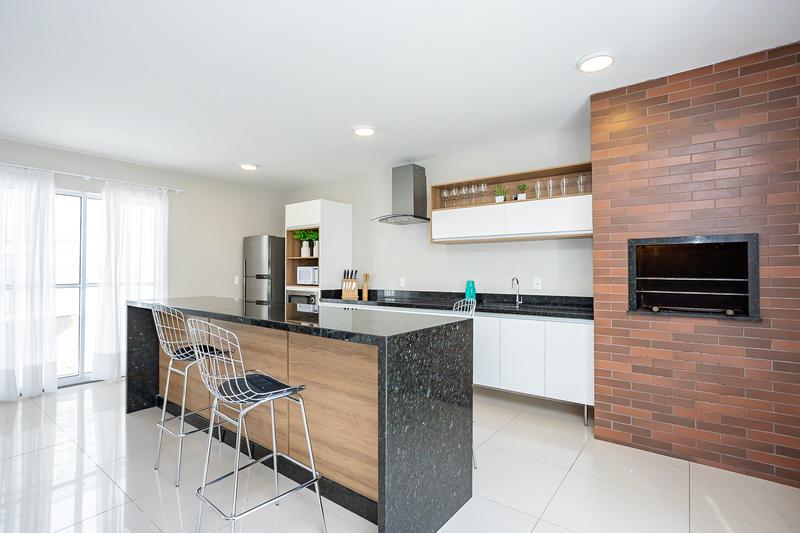 * Área de serviço integrada à cozinha, com acesso à sacada