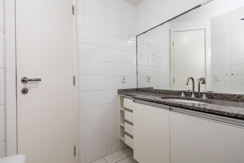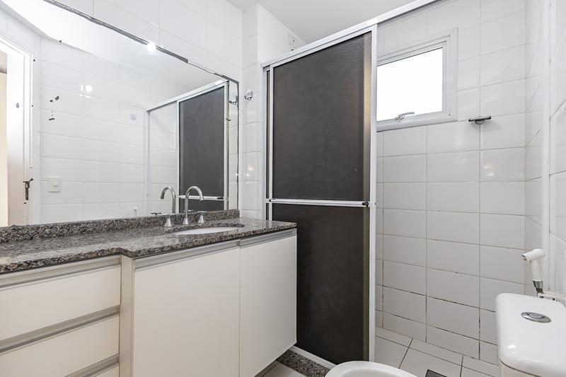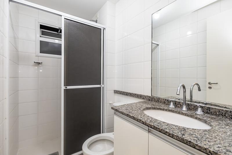 * Banheiros (social e suíte) com tampo em granito e box em acrílico