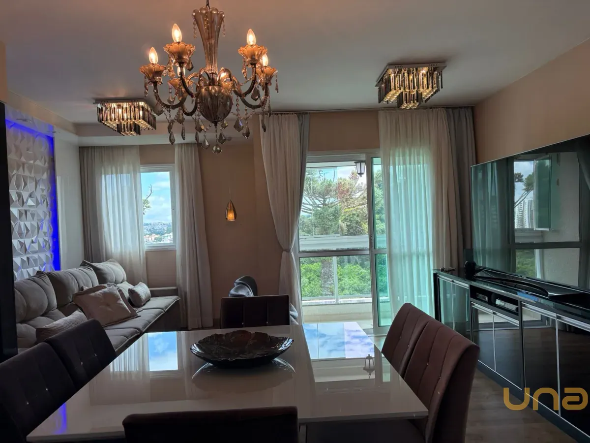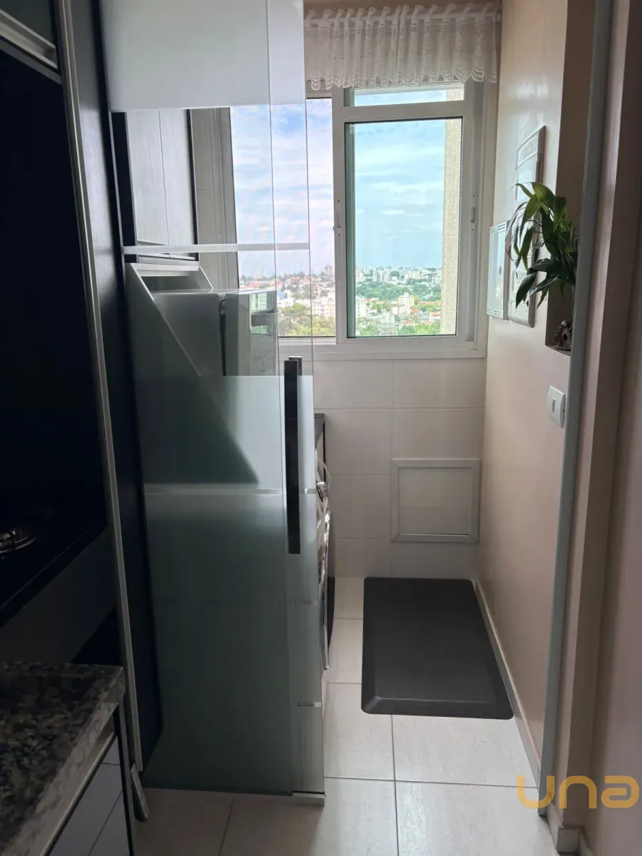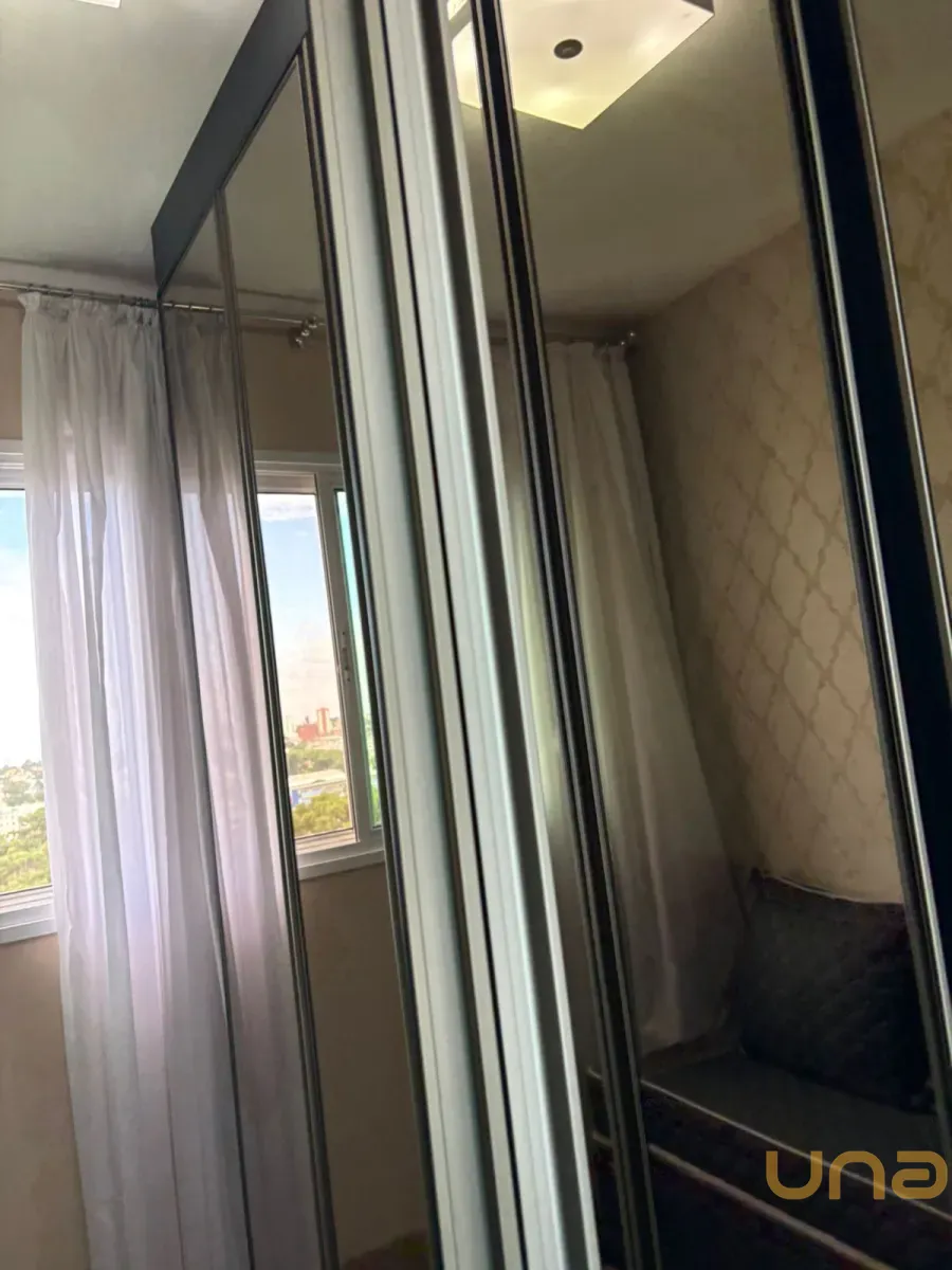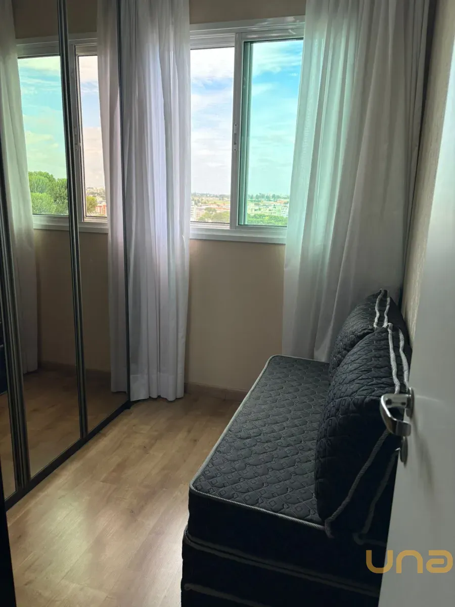 Planta original de 3 dormitórios convertida em 2 dormitórios com sala ampliada, apartamento reformado e decorado, com sacada e linda vista. Dormitório com vista para o Parque Bacacheri.