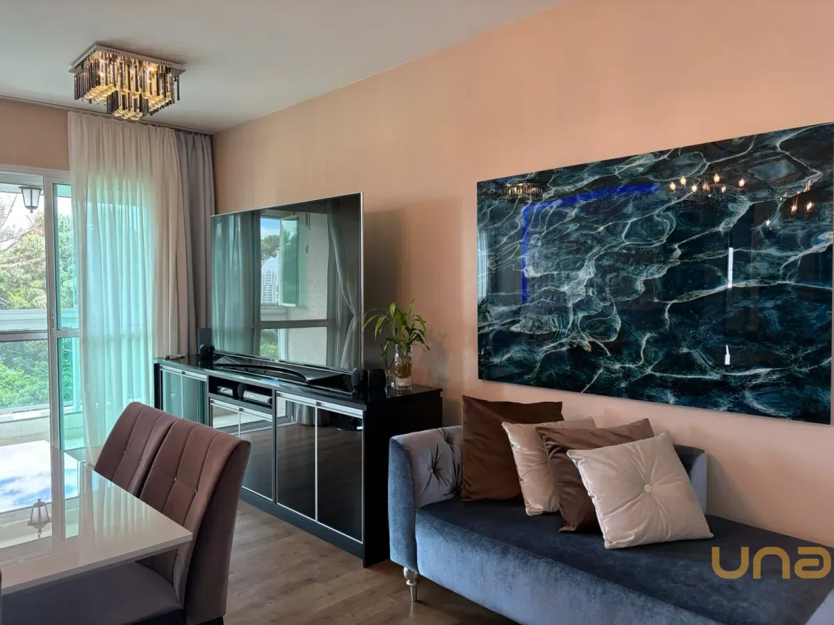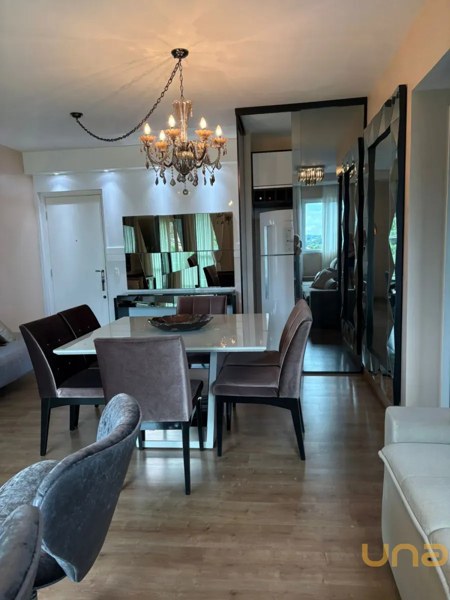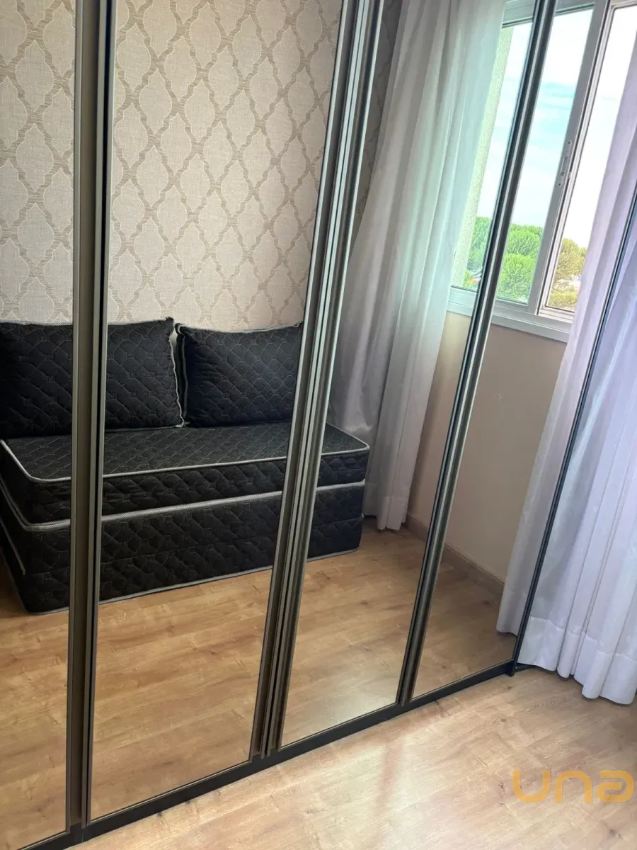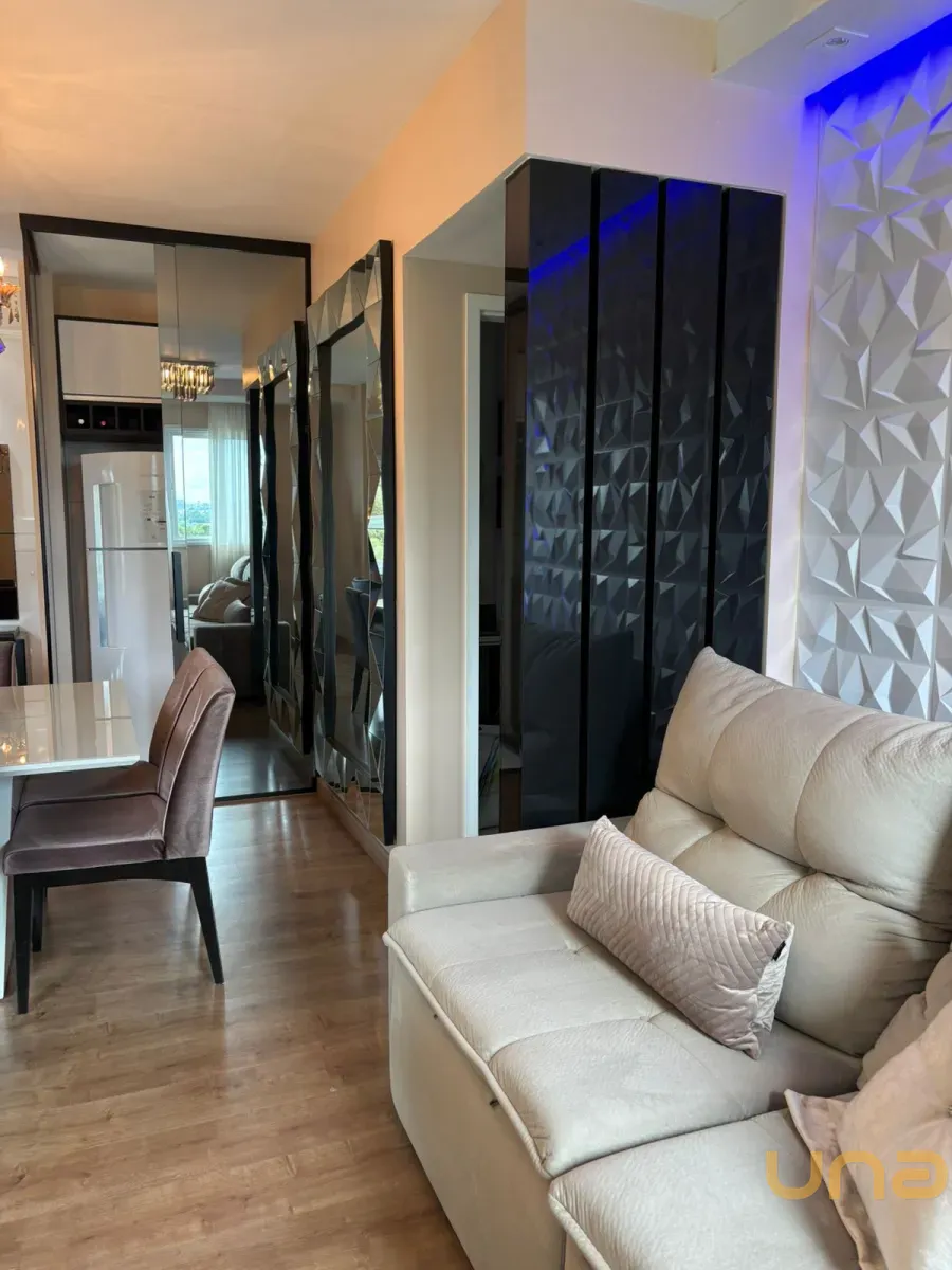 Planta original de 3 dormitórios convertida em 2 dormitórios com sala ampliada, apartamento reformado e decorado, com sacada e linda vista. Dormitório com vista para o Parque Bacacheri.