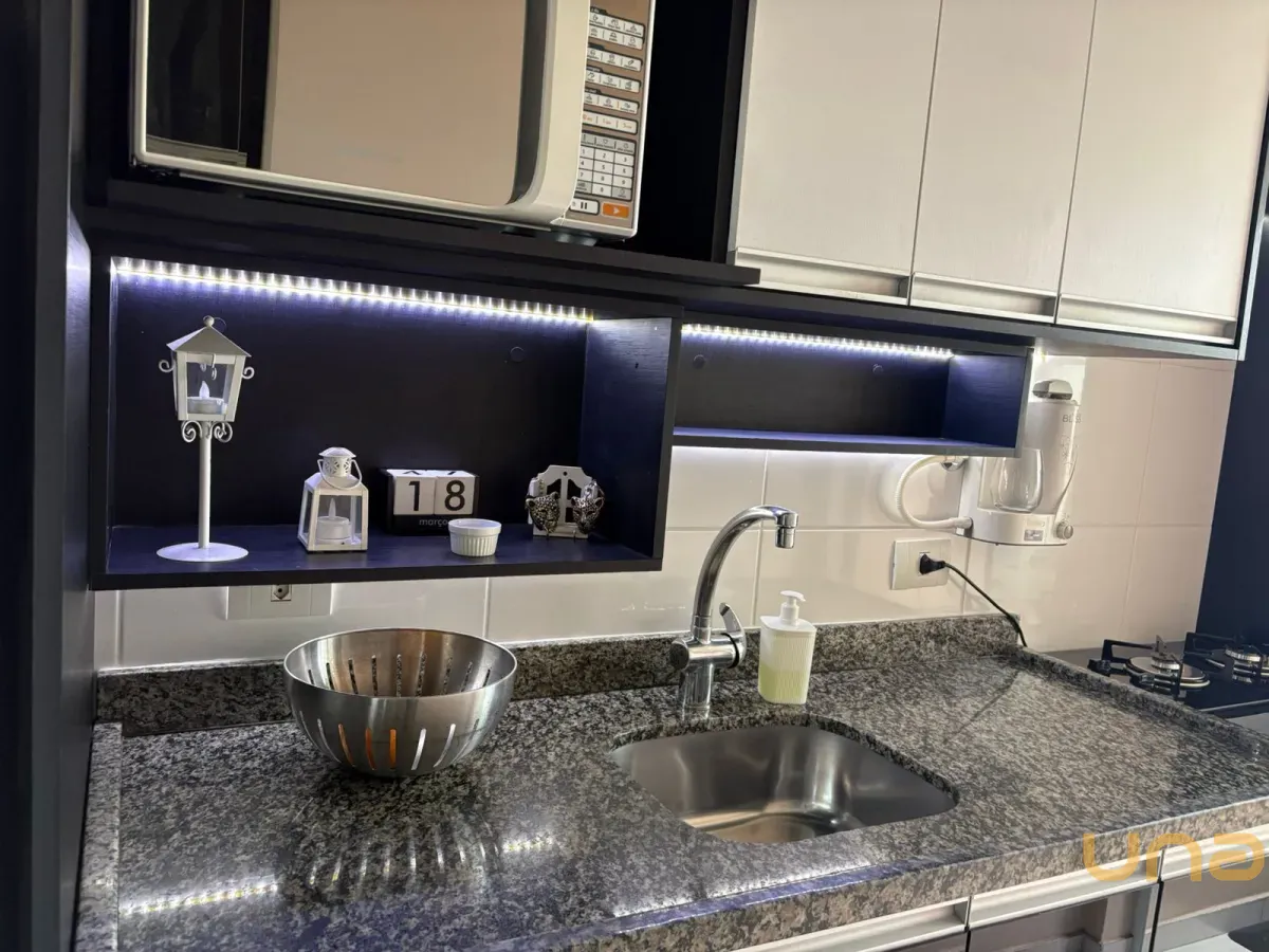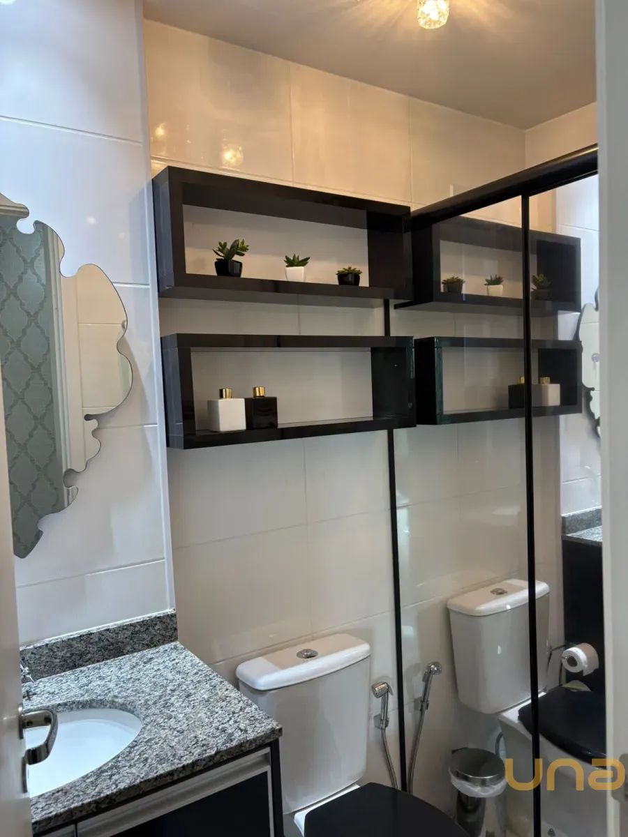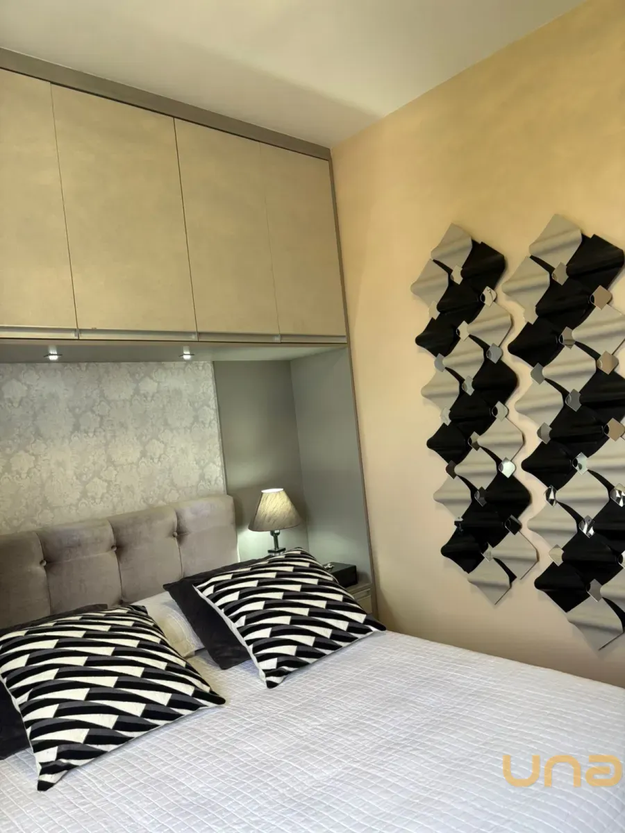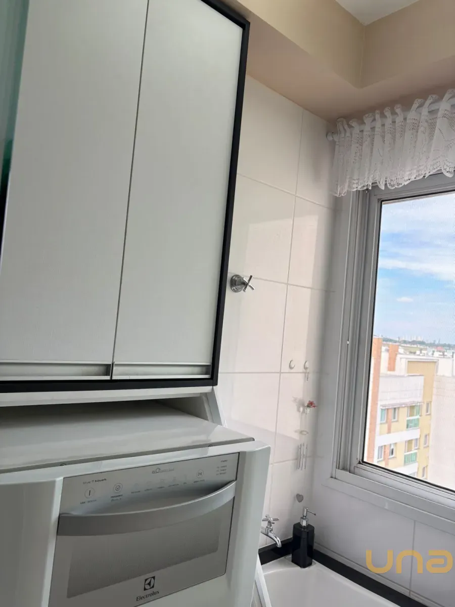 Planta original de 3 dormitórios convertida em 2 dormitórios com sala ampliada, apartamento reformado e decorado, com sacada e linda vista. Dormitório com vista para o Parque Bacacheri.