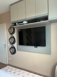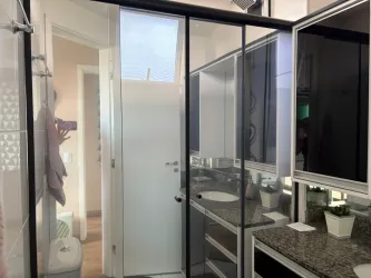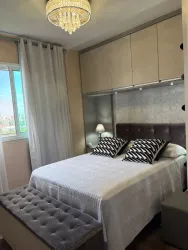 Planta original de 3 dormitórios convertida em 2 dormitórios com sala ampliada, apartamento reformado e decorado, com sacada e linda vista. Dormitório com vista para o Parque Bacacheri.