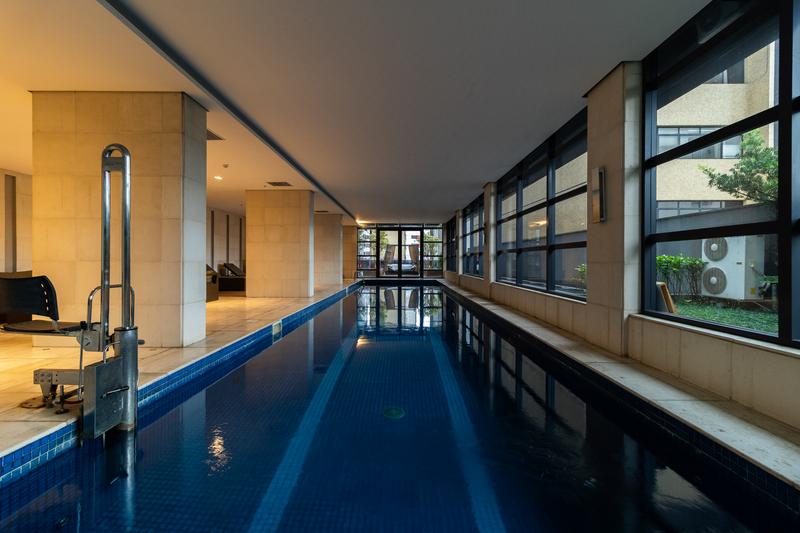 * Piscina aquecida com raia: ideal para relaxar ou praticar natação.
