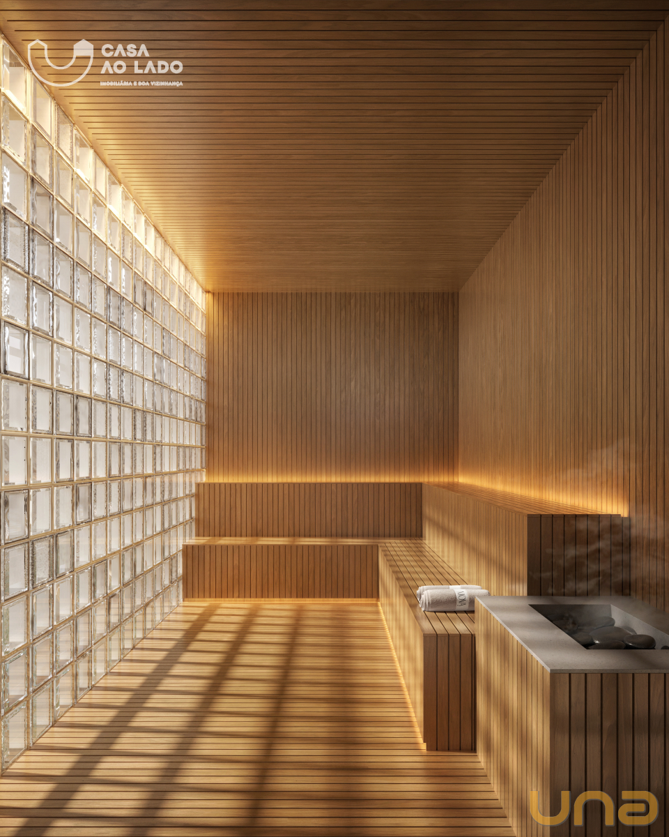 CONDOMÍNIO – bicicletário, brinquedoteca, academia, piscina interna, piscina externa, sauna seca, salão de festas, praça interna, espaço pet. Ainda conta com carregamento para carro elétrico em 1 vaga de cada apartamento, infra para energia solar, um depósito privativo para cada unidade, fachada ativa e integração com o entorno, captação e reuso da água da chuva, wi-fi nas áreas comuns, acesso com reconhecimento facial, e paisagismo regenerativo.