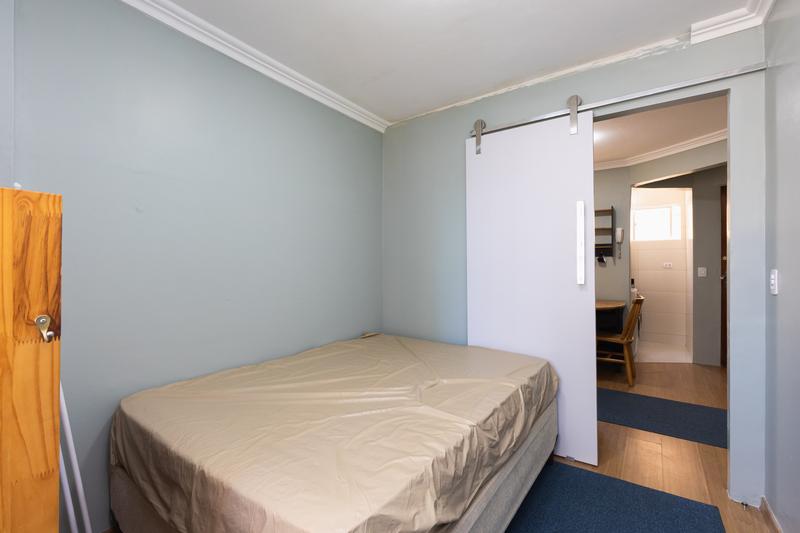O imóvel conta com um quarto acolhedor com cama de casal e guarda roupa.