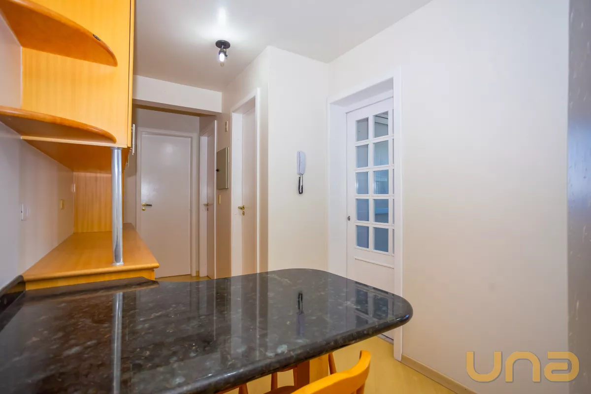 Excelente apartamento com uma sala acolhedora, mesa de granito fixa, perfeita para momentos de refeição e convívio. Ao longo do corredor, armários oferecem espaço organizado e funcional. Os 2 dormitórios são dotados de armários sob medida, sendo a suíte com banheira sem hidromassagem. A cozinha, iluminada naturalmente, está equipada com armários planejados que otimizam o espaço, e uma área de serviço integrada que facilita as tarefas do dia a dia.