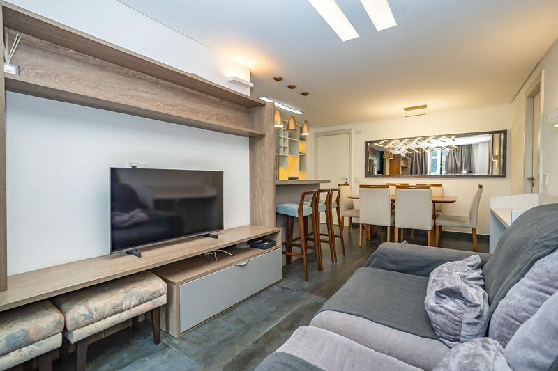 Apartamento semimobiliado em excelente localização no bairro Bigorrilho, próximo a mercados, farmácia, shopping e a poucos minutos do Parque Barigui. Planta de 78,49m2 privativos, face norte e vista livre com excelente ventilação e incidência de sol, 3 quartos sendo 1 suíte todos com armários planejados e cama sendo que os 3 quartos já estão com a preparação pronta para instalação de ar condicionado. Cozinha com armários e eletros, área de serviço com máquina de lavar roupas e com acesso a sacada, sacada com churrasqueira à carvão, sala com painel de TV, bancada e banquetas. Apartamento com teto rebaixado em gesso e projeto de iluminação em todo o apartamento, torneiras e chuveiros com aquecimento a gás e monocomando, paredes com isolamento acústico. Vaga de garagem para 2 carros. Condomínio com salão de festas, brinquedoteca e academia. Portaria presencial de segunda à sexta das 10:00h às 18:00h e aos sábados das 08:00 às 12:00h.