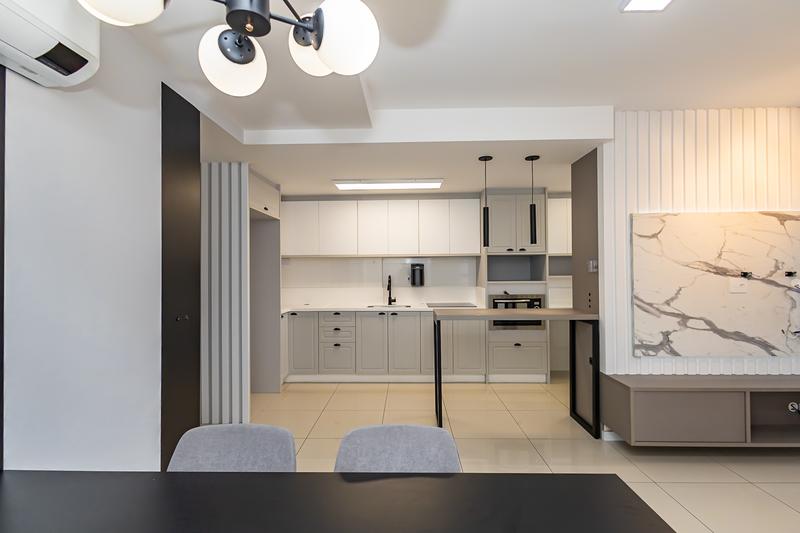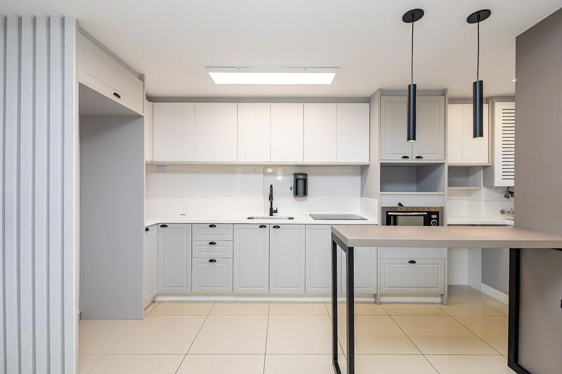* Cozinha completa com fogão de indução, forno elétrico e armários planejados