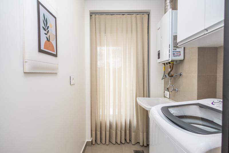 – Lavanderia em anexo a cozinha, possui armário, tanque e máquina de lavar,