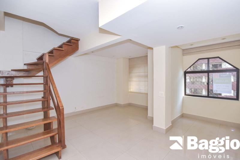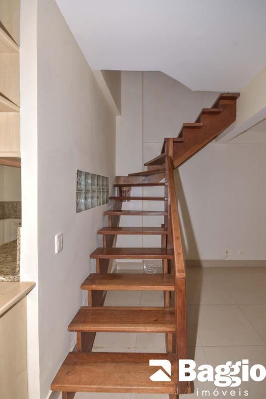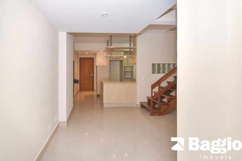 Apartamento duplex de 1 quarto à venda a uma quadra do terminal do Cabral. Planta de 78,29m2 privativos, tendo no piso inferior a cozinha, área de serviço separada, sala e lavabo. Na parte superior uma ampla suíte com closet (possibilidade para alterar para 2 quartos). Vaga de garagem coberta para 01 carro (vaga presa). Condomínio com salão de festas e portaria presencial das 07:00h as 22:00h de segunda à sexta.
