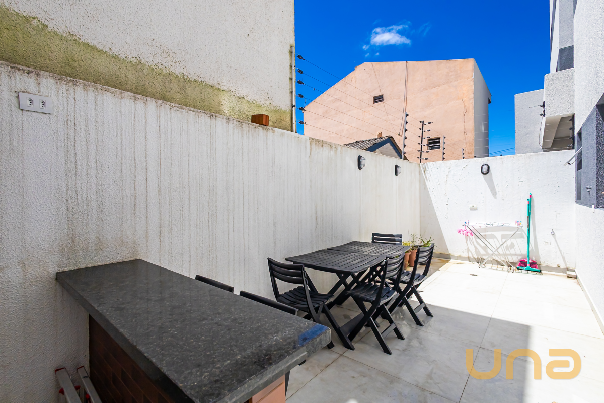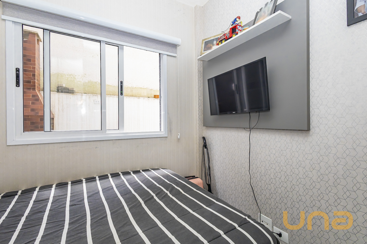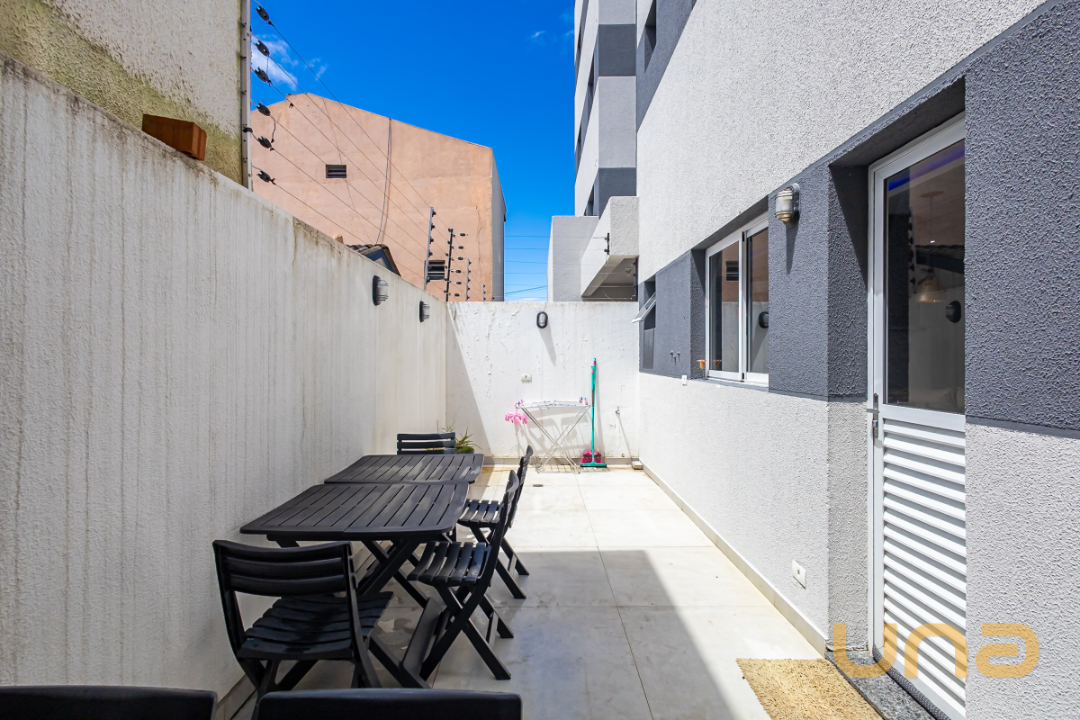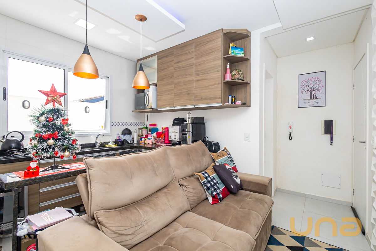 Sala conjugada com a cozinha com armários embutidos fogão cooktop, forno elétrico, máquina de lavar roupas, micro-ondas, teto em gesso, sofá cama, 01 quarto com armários embutidos com cortina blackout, 01 banheiro com box de vidros e armários, central de gás (fogão) aquecimento elétrico, piso cerâmico, amplo garden com churrasqueira contendo pia e amplo espaço para uso de lavanderia, cerca elétrica, não tem vaga de garagem
