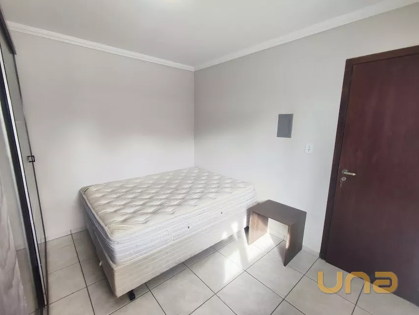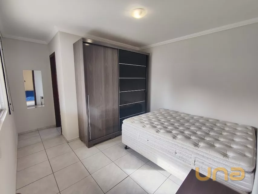 – cozinha com armários, refrigerador duplex, fogão, microondas; sala: mesa com cadeiras,sofá e estante; 2 dormitórios com cama de casal, armário (estado regular)