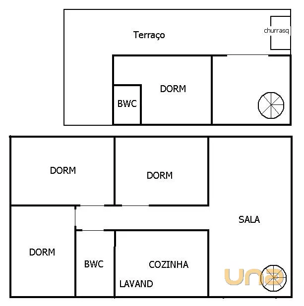 – Ampla sala, banheiro e terraço com churrasqueira coberta.
