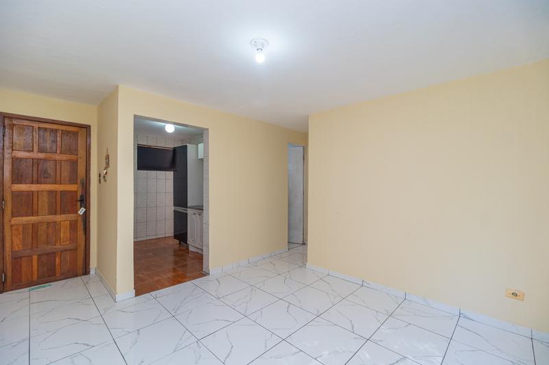 O imóvel conta com sala para dois ambientes, cozinha com armários, lavanderia integrada com tanque, 2 quartos e banheiro com espelho e box em vidro.