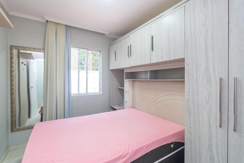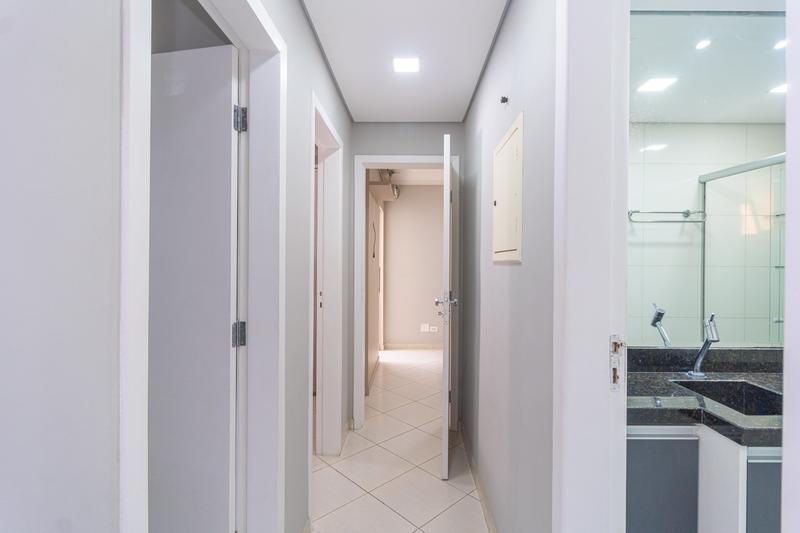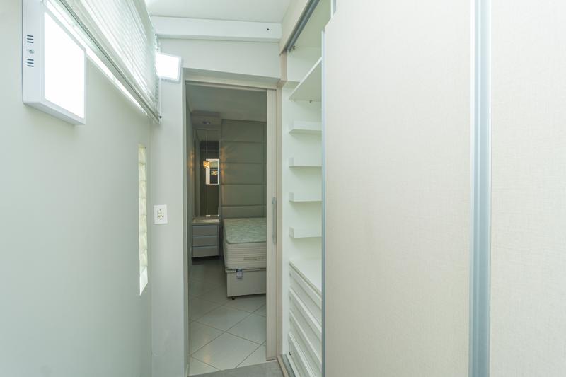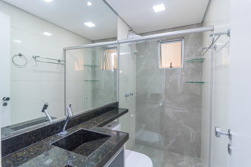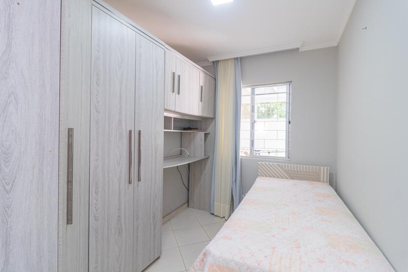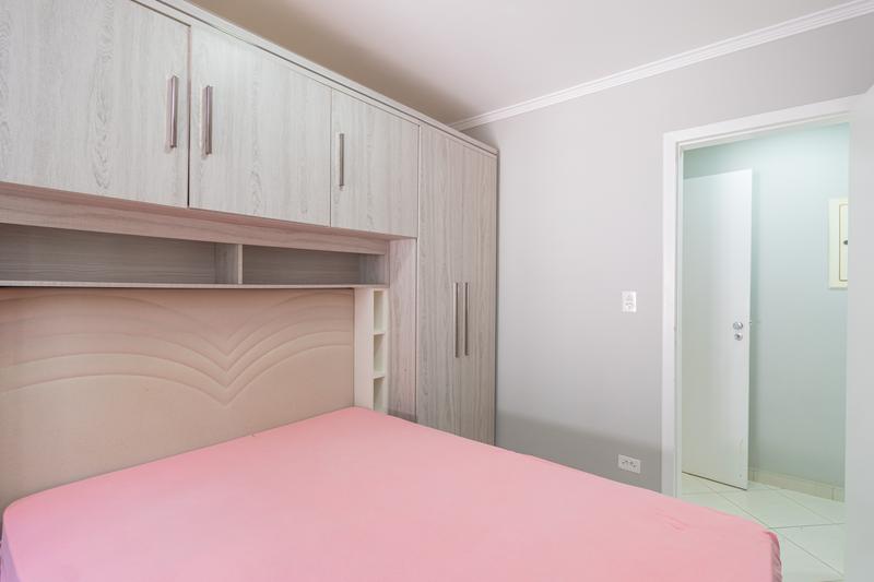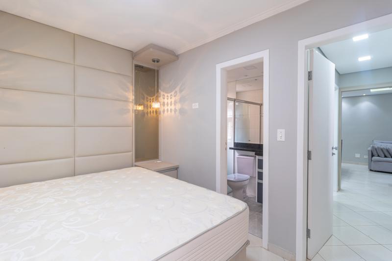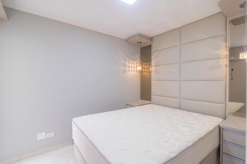 – 3 Quartos sendo uma suíte com closet, painel para TV, cabeceira e mesinha de cabeceira, um com armário planejado, bancada para estudos e cama box de solteiro, e outro com armário e espaço para cama de casal e painel para TV,