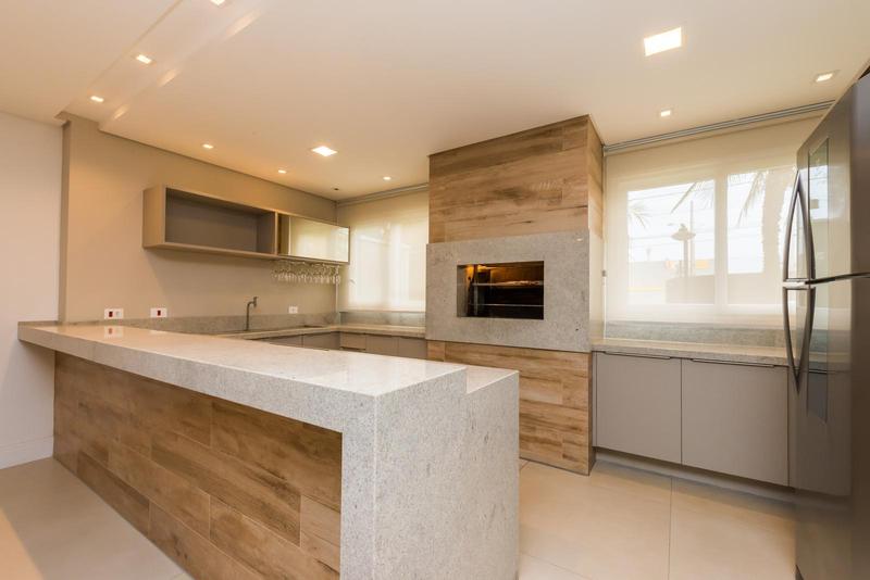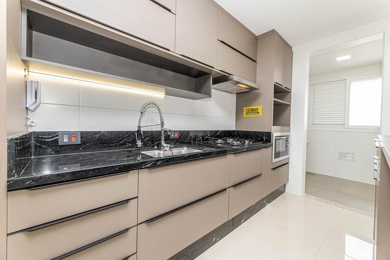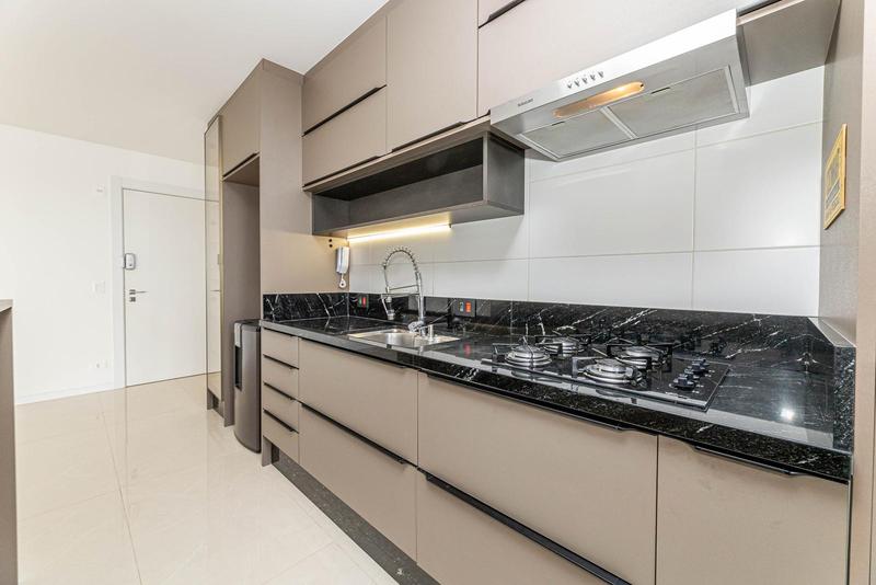 – Cozinha em conceito aberto com armários planejados, cooktop, depurador e forno embutido,