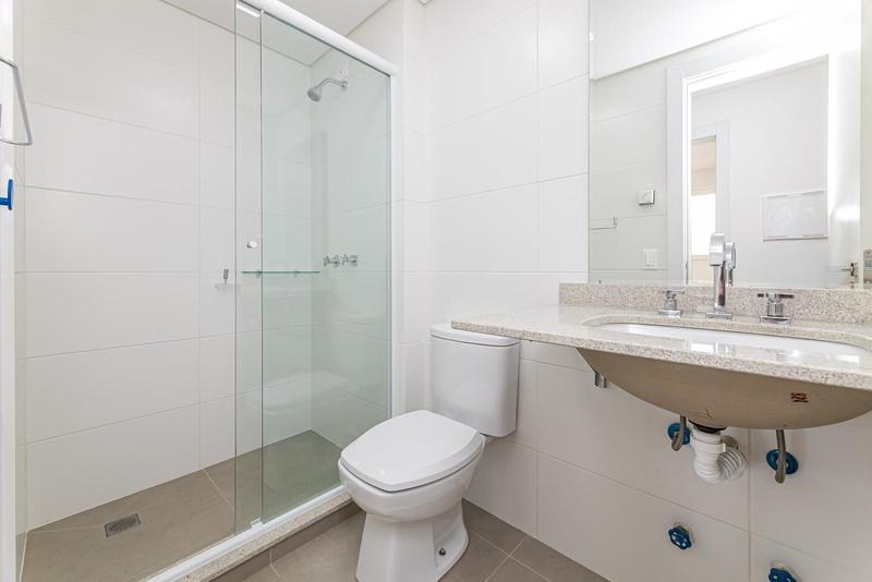 – Banheiro social com armário, espelho e box em blindex,