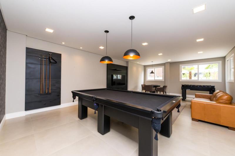 – Sala ampla para 2 ambientes, com ar condicionado, possui acesso a saca com churrasqueira, armário e pia,
