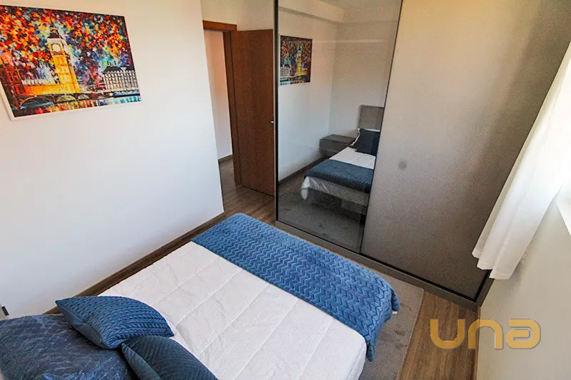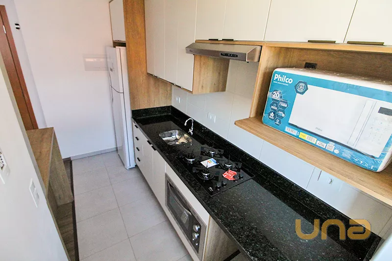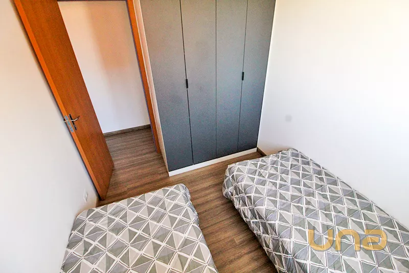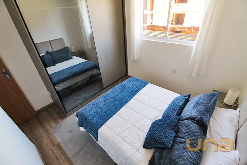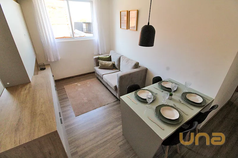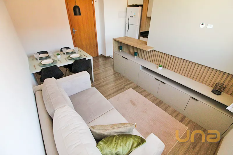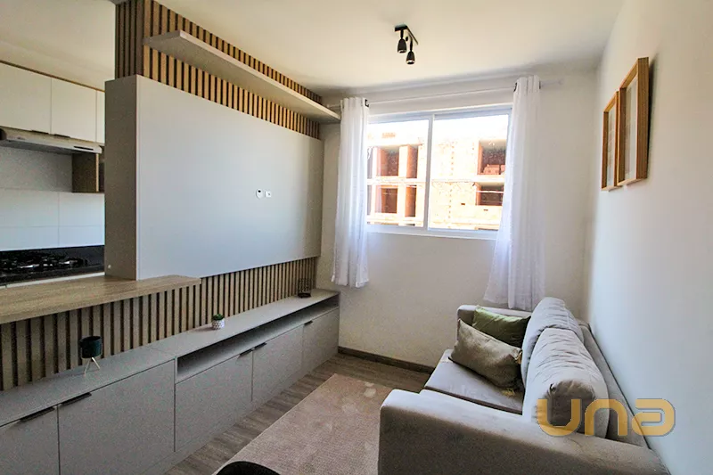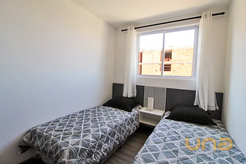 Apartamento MOBILIADO E DECORADO com sala para dois ambientes contendo painel para TV, rack, sofá dois lugares e mesa 4 lugares; Cozinha em conceito aberto com armários planejados, cooktop, micro-ondas, forno elétrico, geladeira Frost Free Duplex 280 litros com cuba em inox embutida, armários e espaço para lava/seca roupas; Dormitório de solteiro com duas camas com cabeceira e roupeiro 4 portas; Dormitório de casal com cama box e cabeceira, roupeiro portas de correr; Banheiro social com pia em granito e armário; Tomadas USB na sala e no quarto de casal; Piso laminado, tapetes e luminária; 1 Vaga de garagem descoberta, livre e demarcada n° 26; Medidores individuais de água, gás e luz.