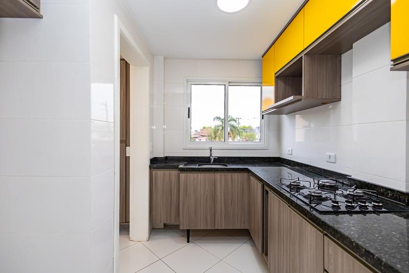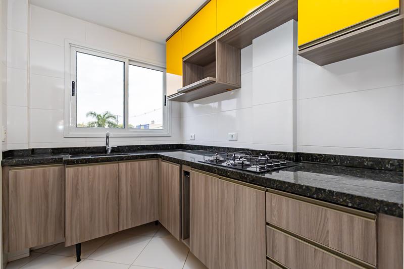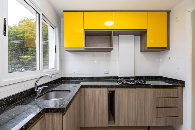 Cozinha com armários planejados, trazendo praticidade e organização.