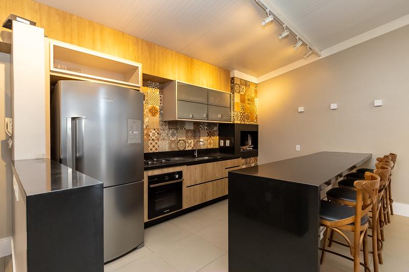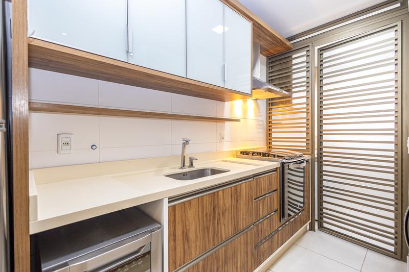 3 dormitórios, sendo 1 suíte, ampla sala para dois ambientes, sacada com churrasqueira a carvão com uma bela vista, cozinha com móveis planejados, área de serviço independente e 2 vagas de garagem cobertas.