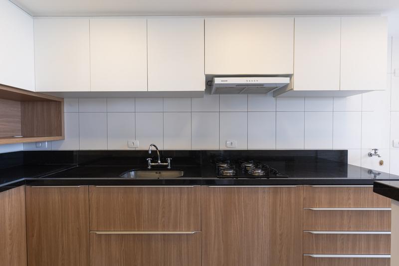 Cozinha equipada com armários planejados, garantindo praticidade e organização no dia a dia.