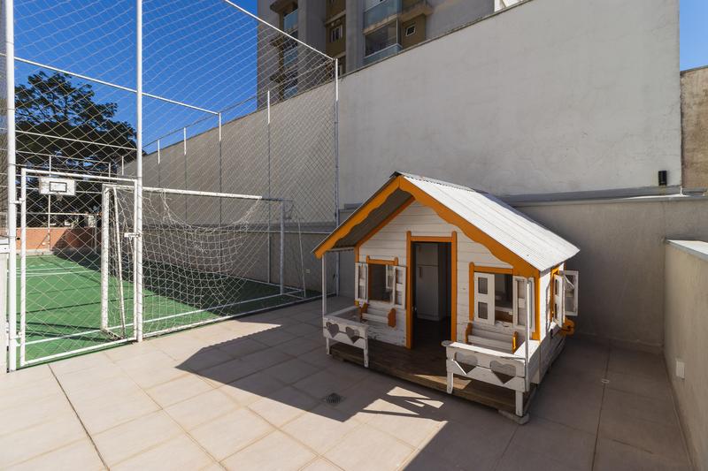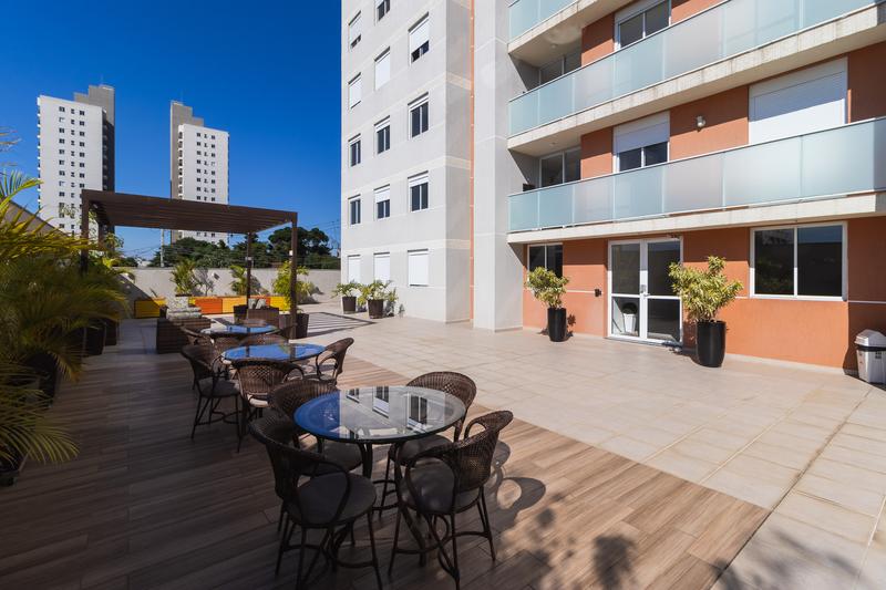 Sacada com churrasqueira a carvão, ideal para desfrutar de momentos agradáveis com familiares e amigos.