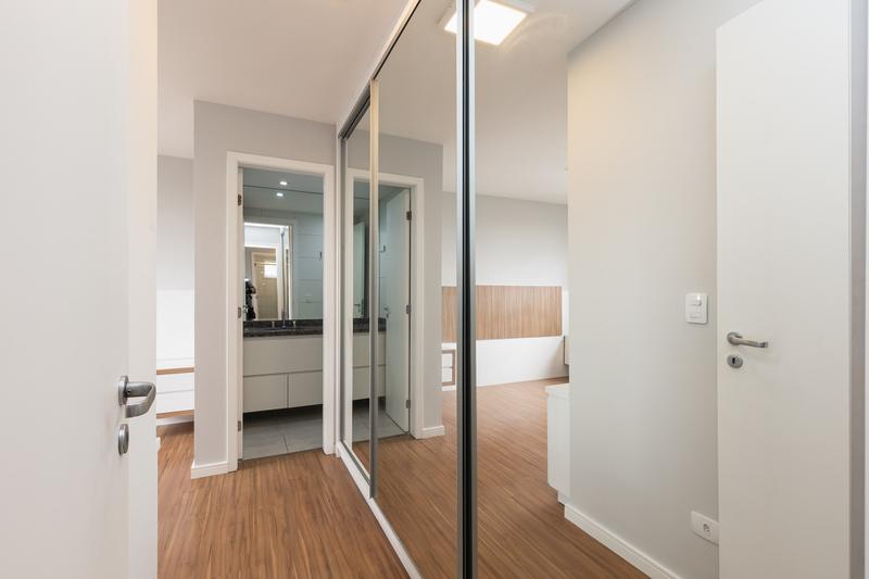 Quarto suíte com armários planejados, proporcionando conforto e privacidade.