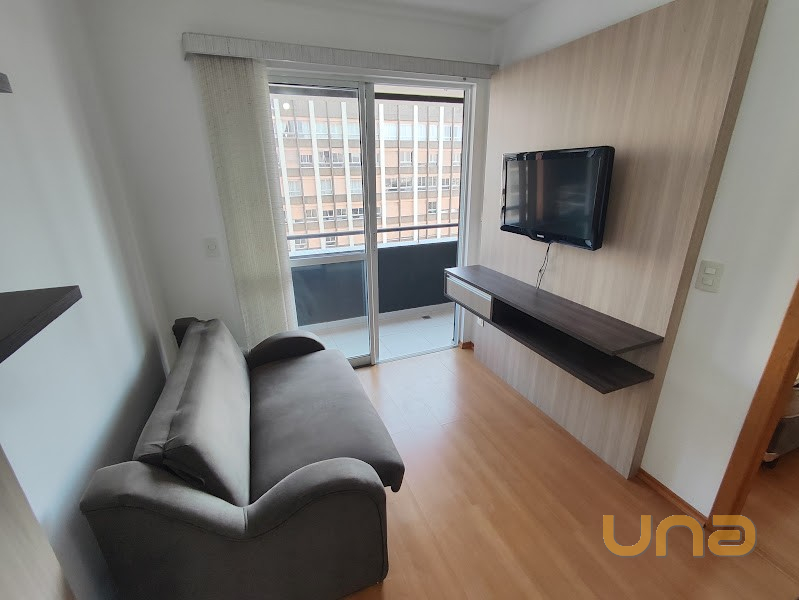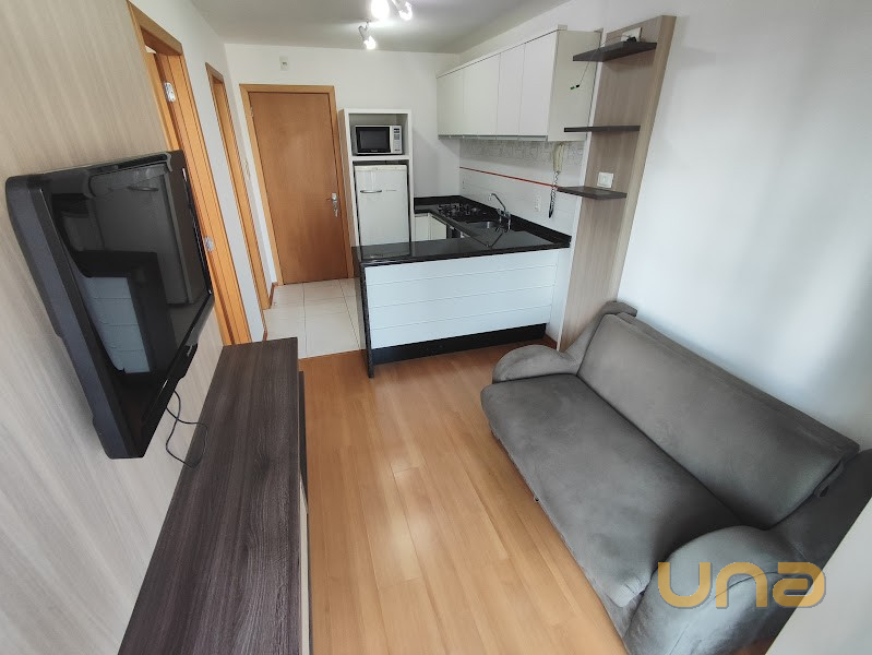 Totalmente Mobiliado: Talheres e utensilios domésticos – microondas, geladeira, bancada em granito, fogão cooktop 4 bocas, rack, painel com TV LED, sofa, persianas – Dormitório: cama box casal, guarda-roupas, escrivaninha – TV LED – cortinas – piso cerâmica – sacada