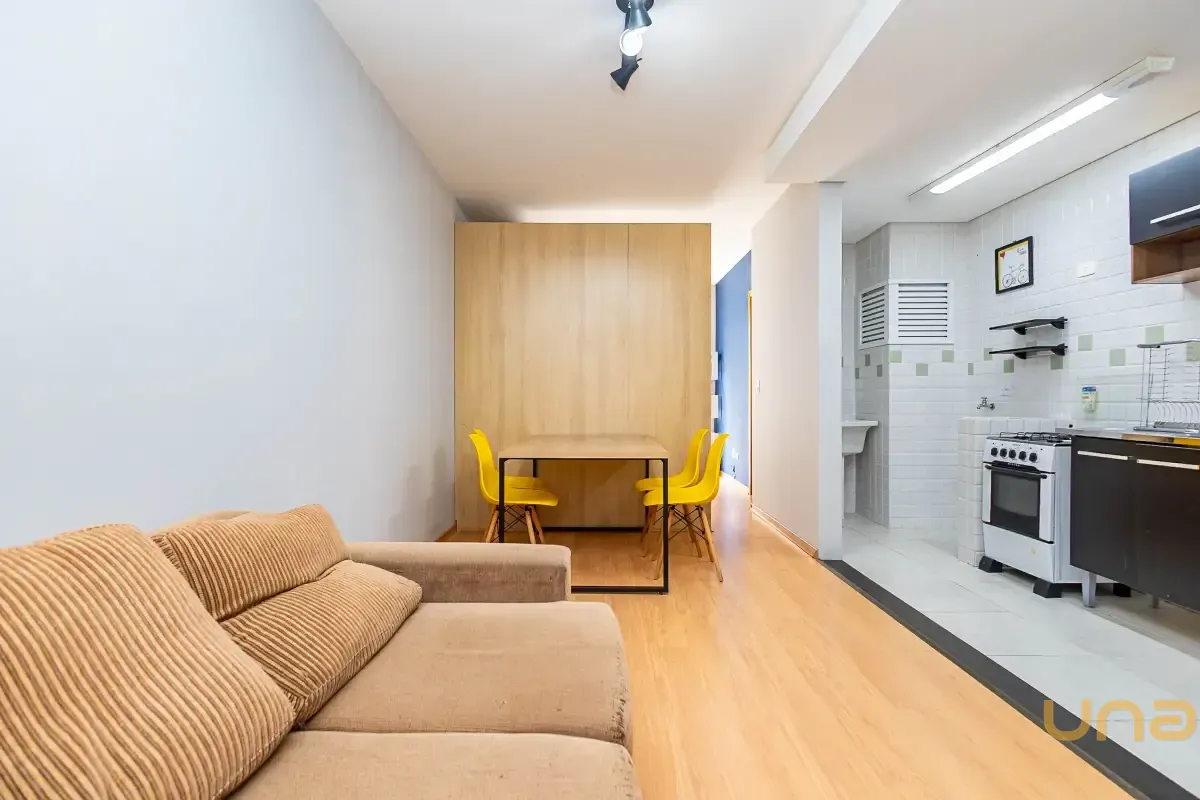 Esse apartamento conta com sala e cozinha conjugada, 01 dormitório, banheiro social, sacada.