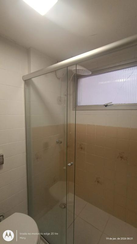01 Banheiro social com box em vidro chuveiro elétrico e armário embutido