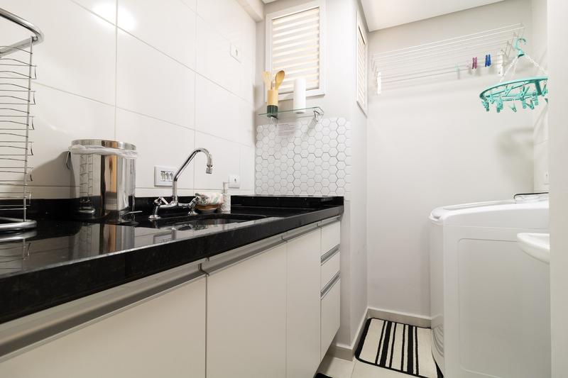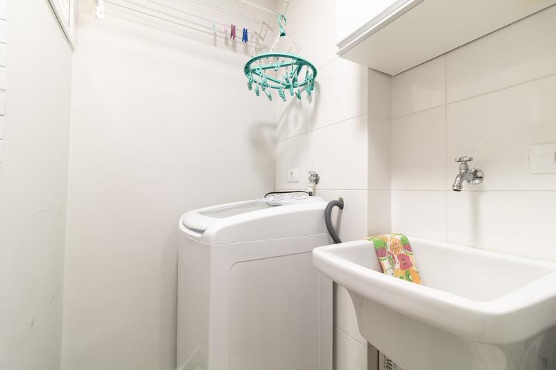 01 Área de serviço equipada com máquina de lavar individual tanque e varal fixo