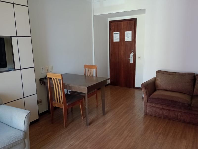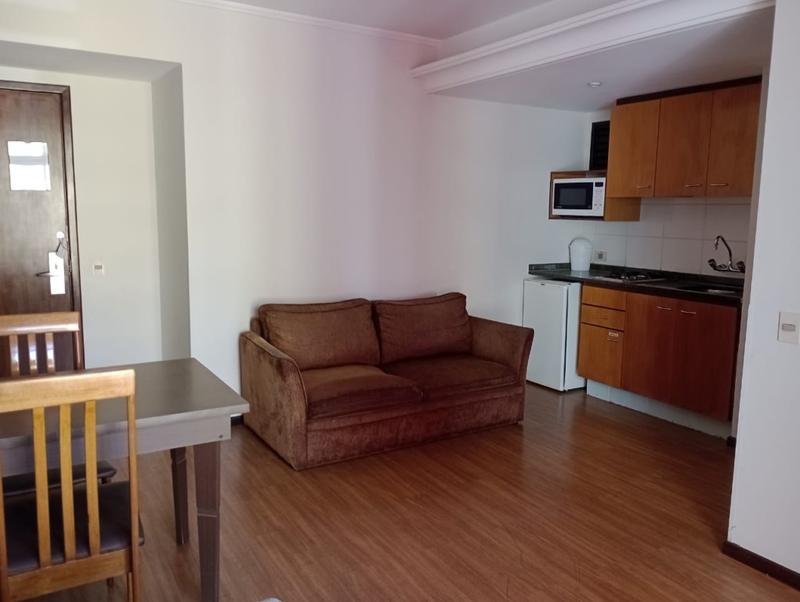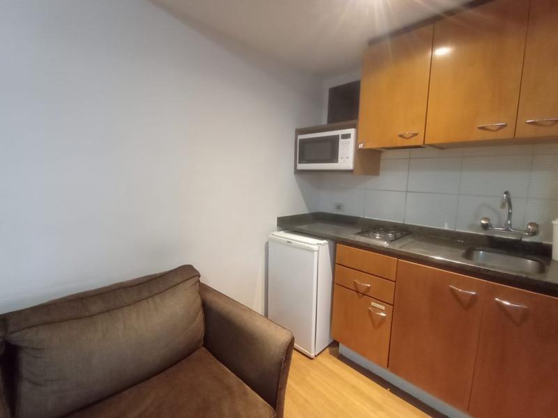 * Sala e cozinha conjugadas, com sofá, mesa e 02 cadeiras, frigobar, microondas e ar condicionado.
