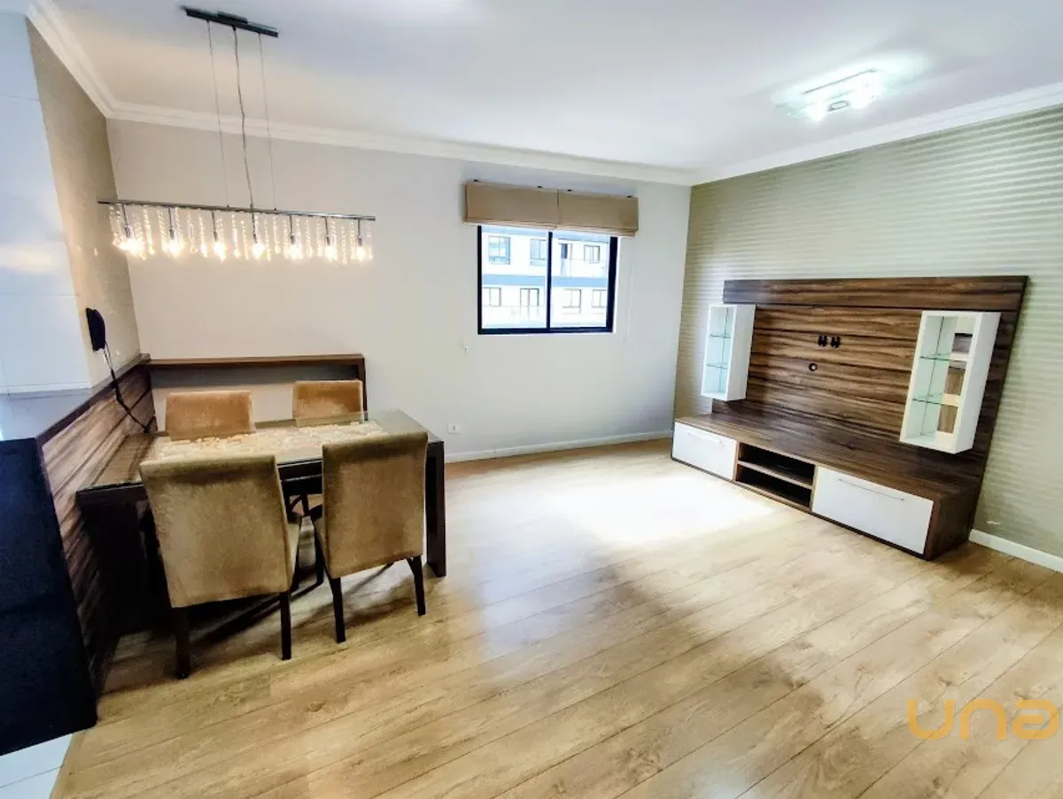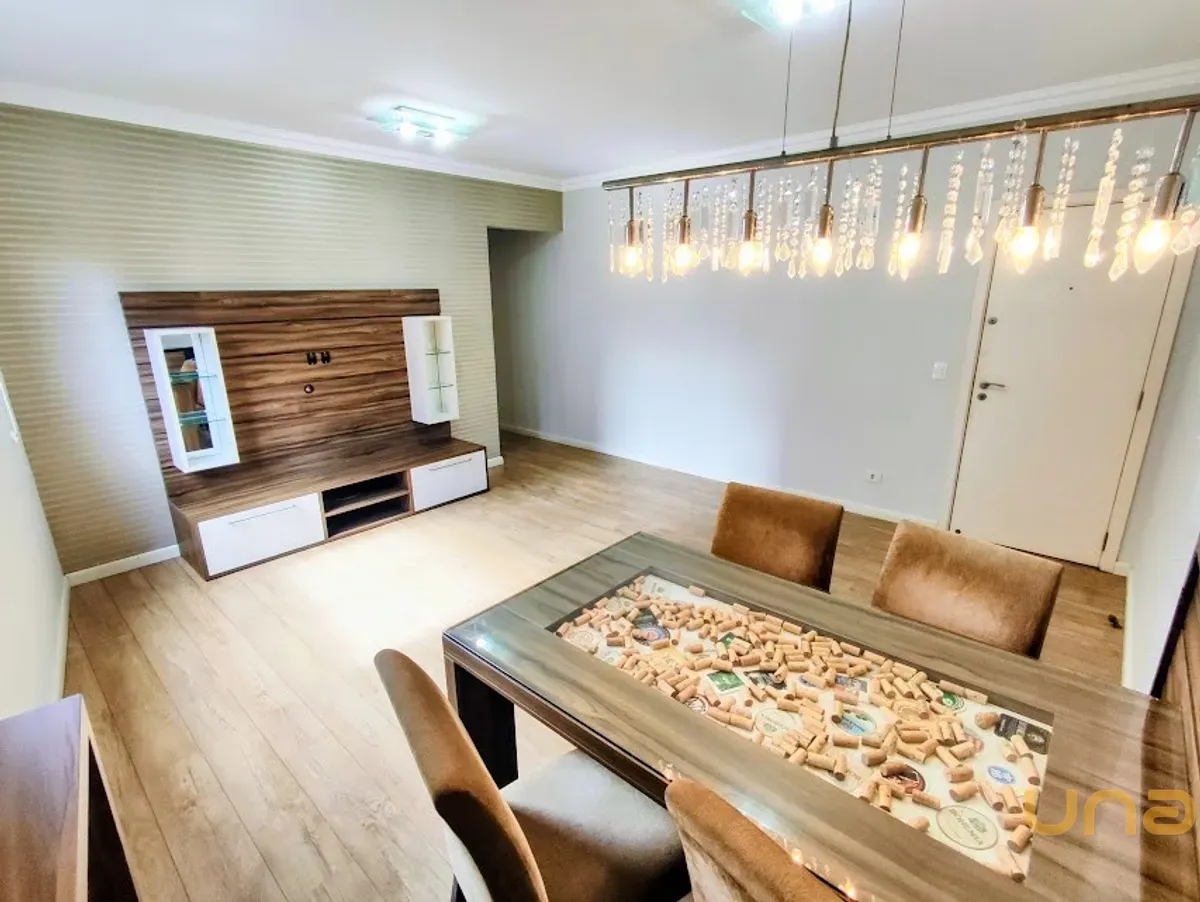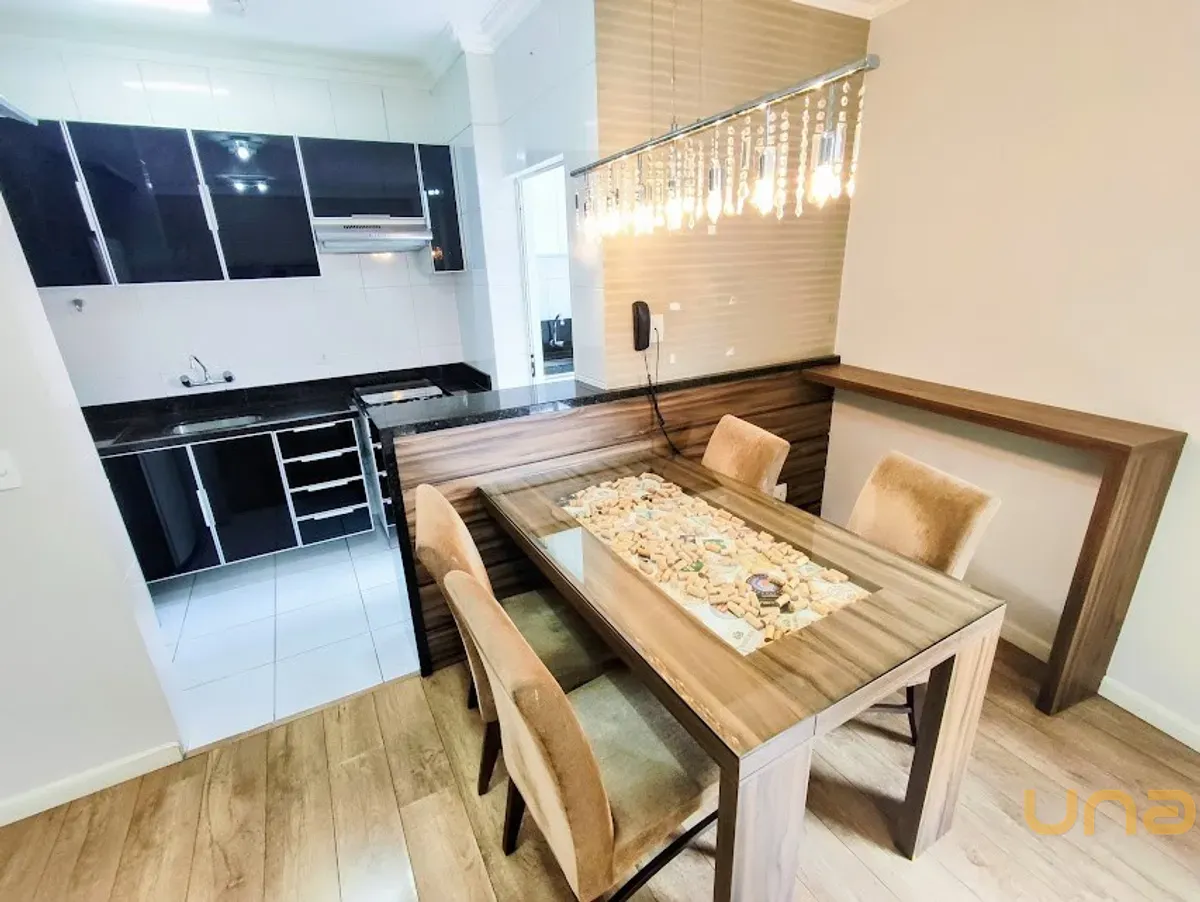 2 dormitórios com uma cama box casal e outro com box solteiro – bwc com box blindex – cozinha com armários, tampos em granito, fogão, geladeira duplex e microondas – sala com mesa 4 cadeiras, lustres, e rak para TV – Área de serviço com armários e maquina de lavar