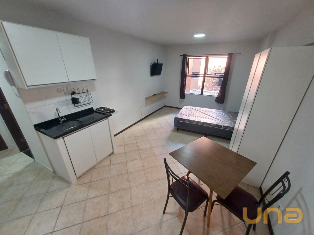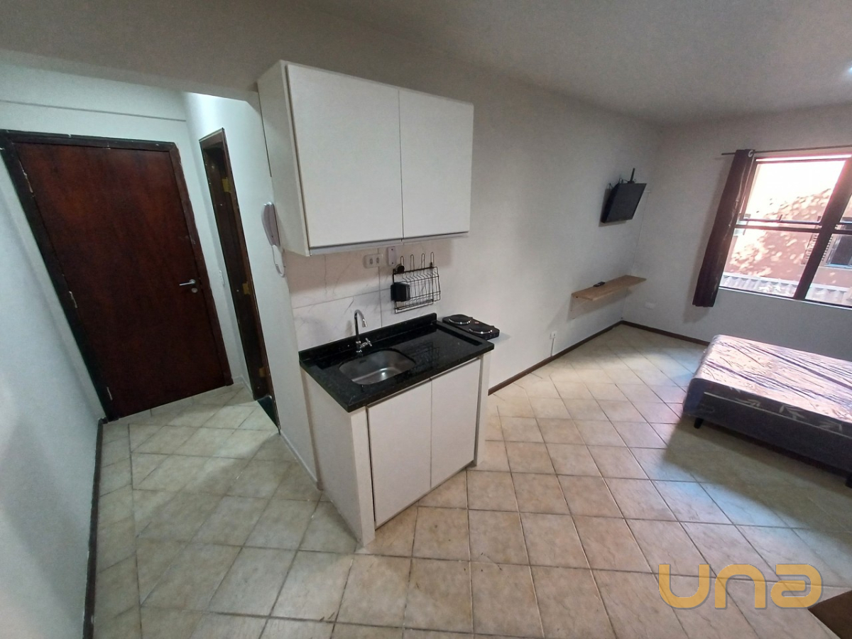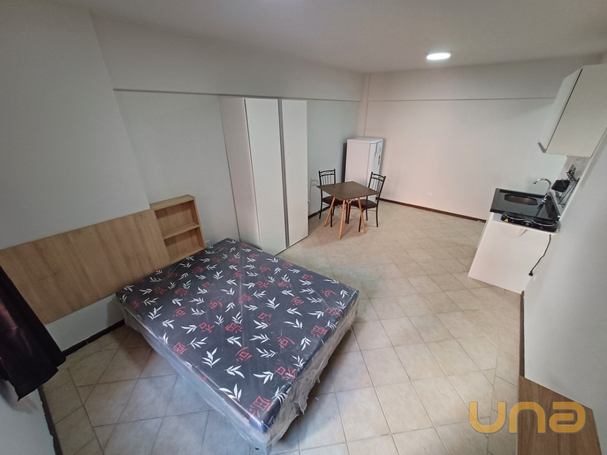 Detalhes: Studio MOBILIADO CONTENDO: SALA E QUARTO CONJUGADOS, COM CAMA DE CASAL, GUARDA ROUPA, MESA COM 02 CADEIRAS, TV, GELADEIRA, FOGÃO ELÉTRICO DUAS BOCAS (NÃO AUTORIZAÇÃO FOGÃO A GÁS), BANHEIRO SOCIAL COM PIA E PRATELEIRAS, BOX DE VIDRO.