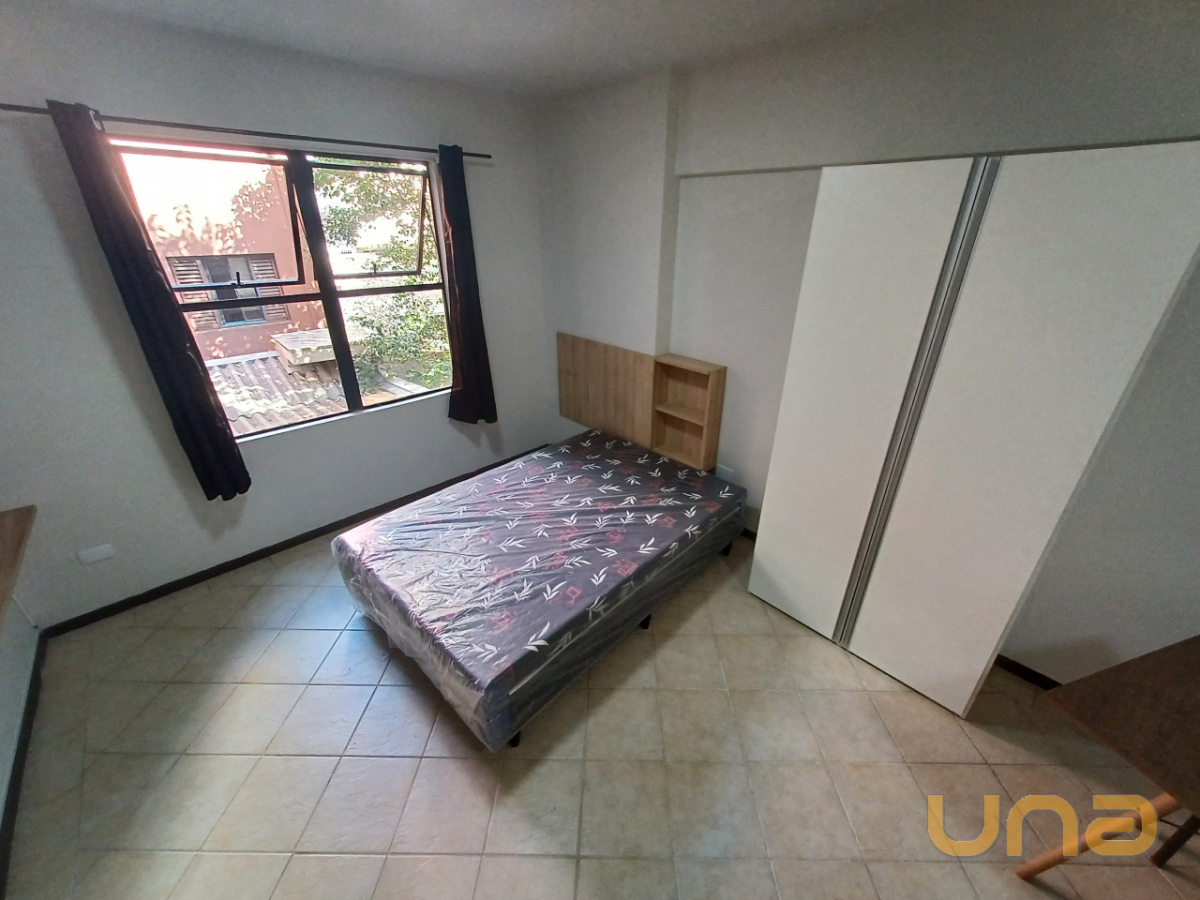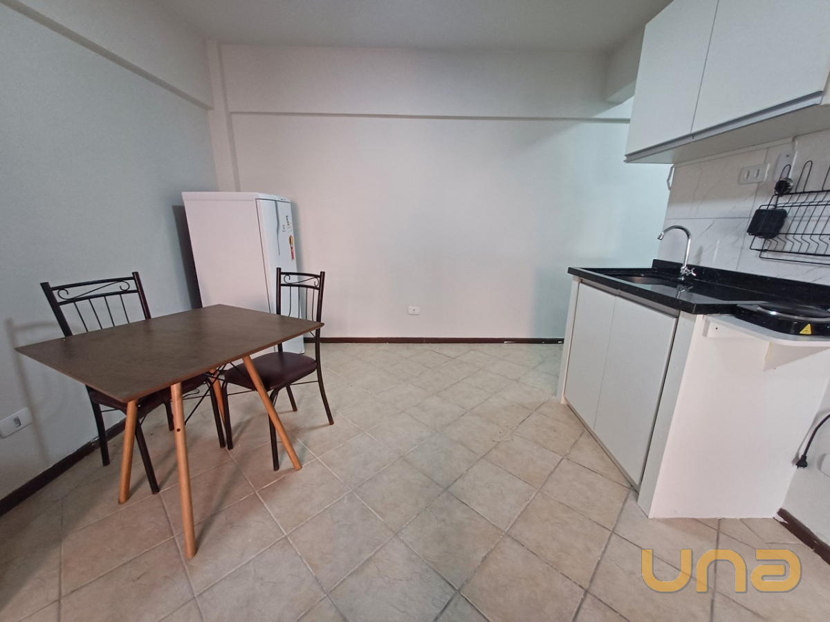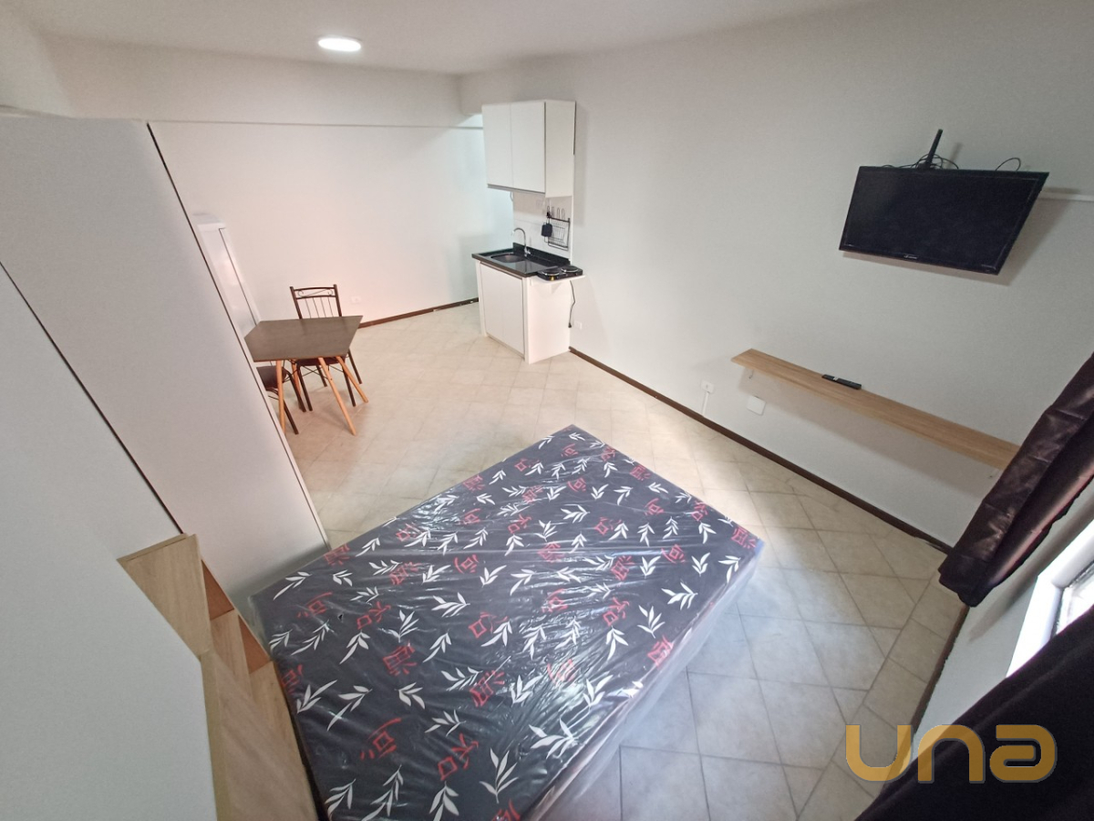 Detalhes: Studio MOBILIADO CONTENDO: SALA E QUARTO CONJUGADOS, COM CAMA DE CASAL, GUARDA ROUPA, MESA COM 02 CADEIRAS, TV, GELADEIRA, FOGÃO ELÉTRICO DUAS BOCAS (NÃO AUTORIZAÇÃO FOGÃO A GÁS), BANHEIRO SOCIAL COM PIA E PRATELEIRAS, BOX DE VIDRO.