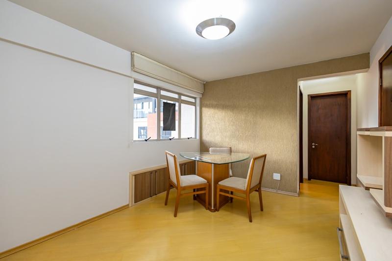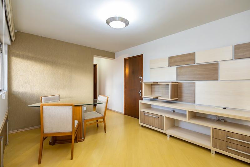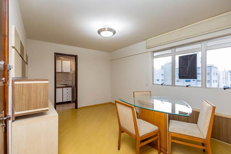 01 sala para dois ambientes, mesa e painel de TV,
