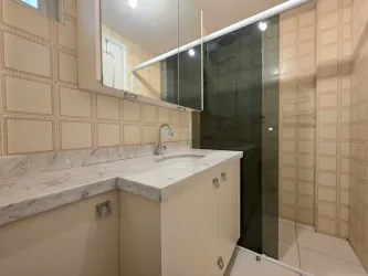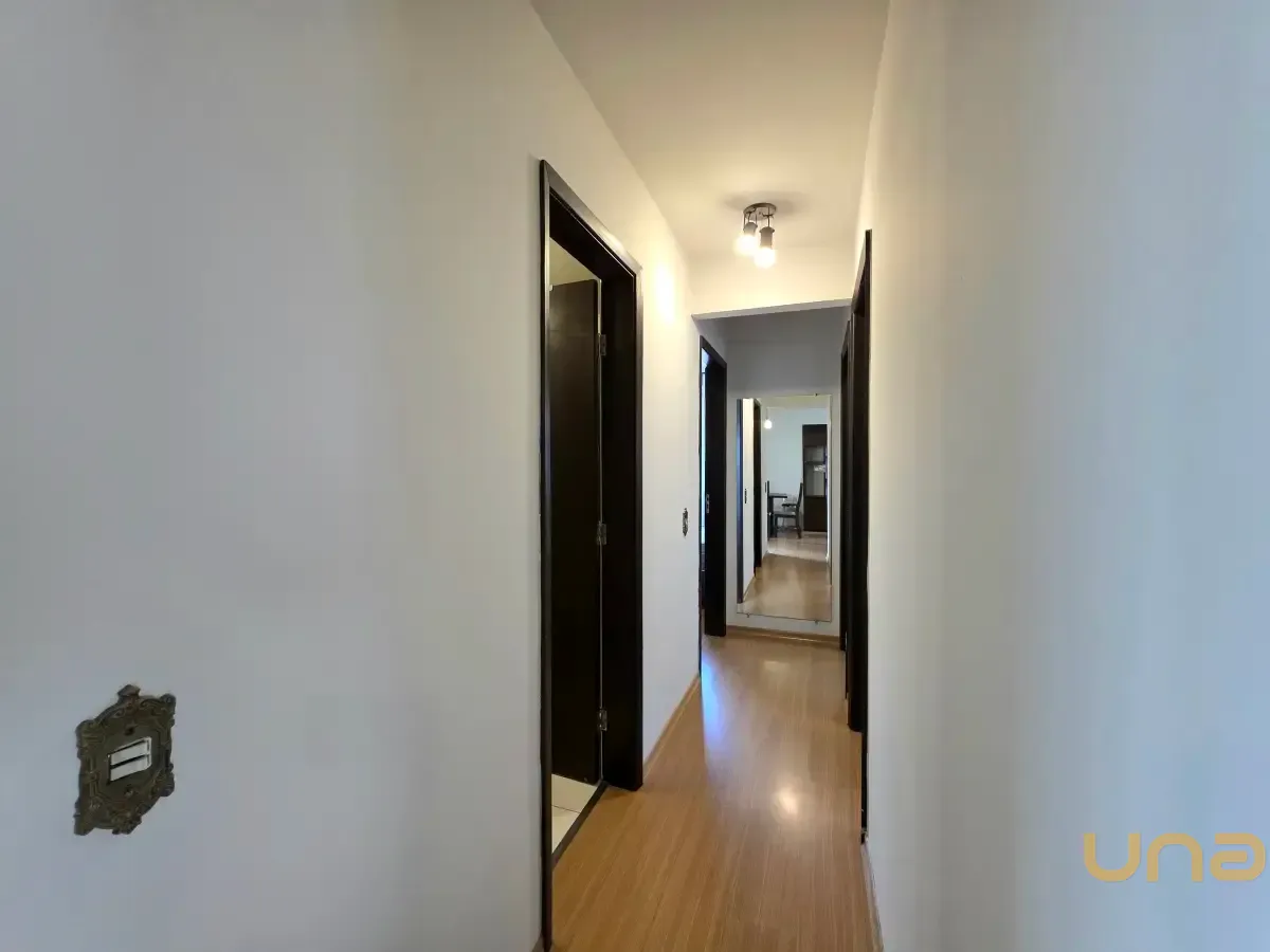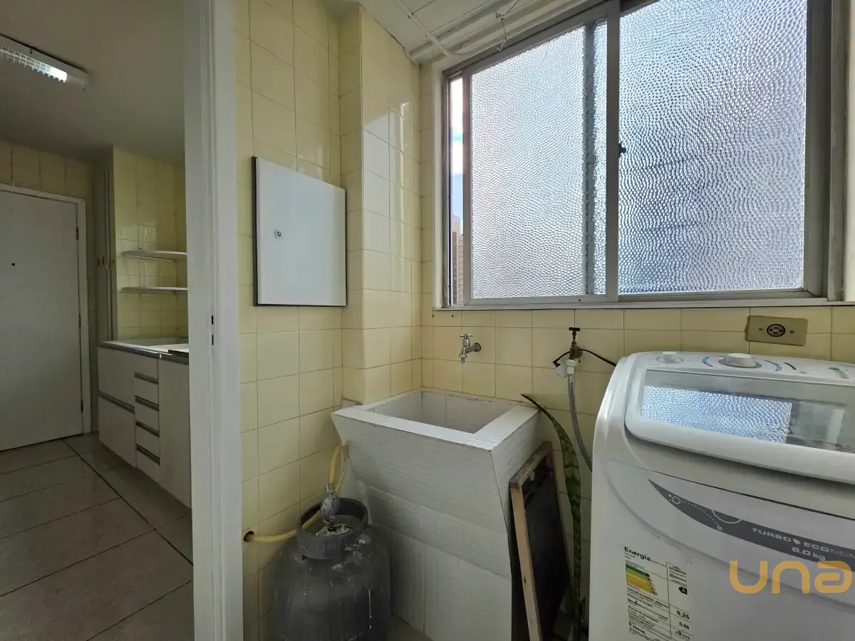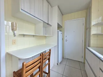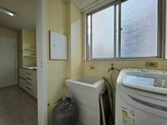 Apartamento contendo 3 dormitórios com armários, sala para 2 ambientes com estante, banheiro social com armário, box em vidro temperado e espelho, cozinha com armário, fogão 4 bocas e geladeira, área de serviço com máquina de lavar roupa, banheiro de serviço e uma vaga de garagem.