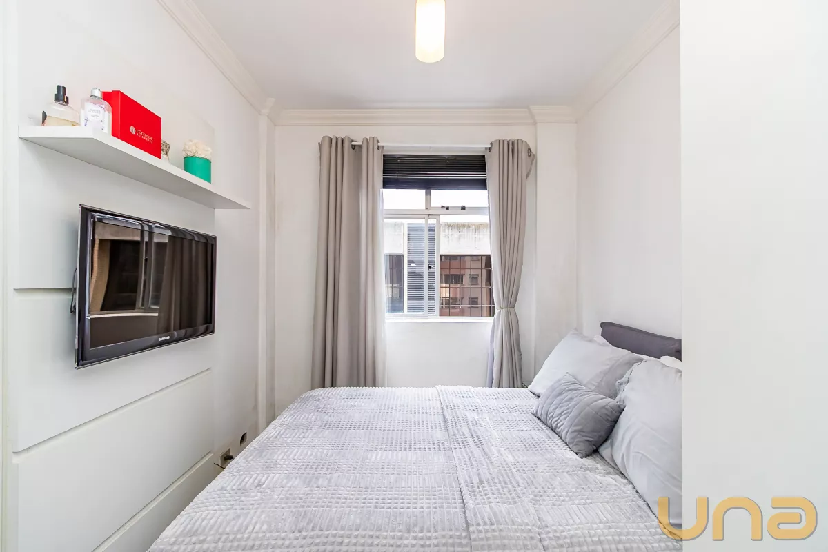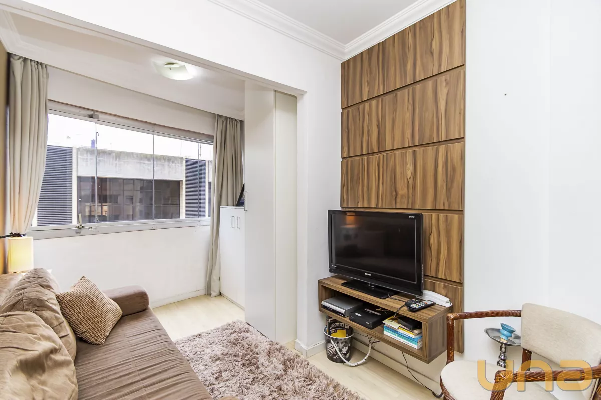 Apartamento aconchegante, 1 quadra do shopping curitiba, com uma excelente planta, cozinha gourmet, estilo americana, área de serviço separada da cozinha, ampla sala para 2 ambientes, banheiro social. Imperdível!