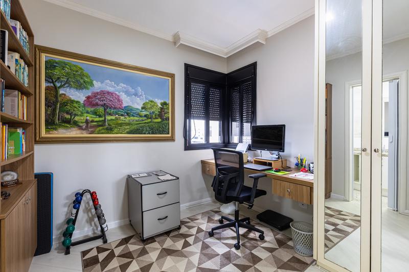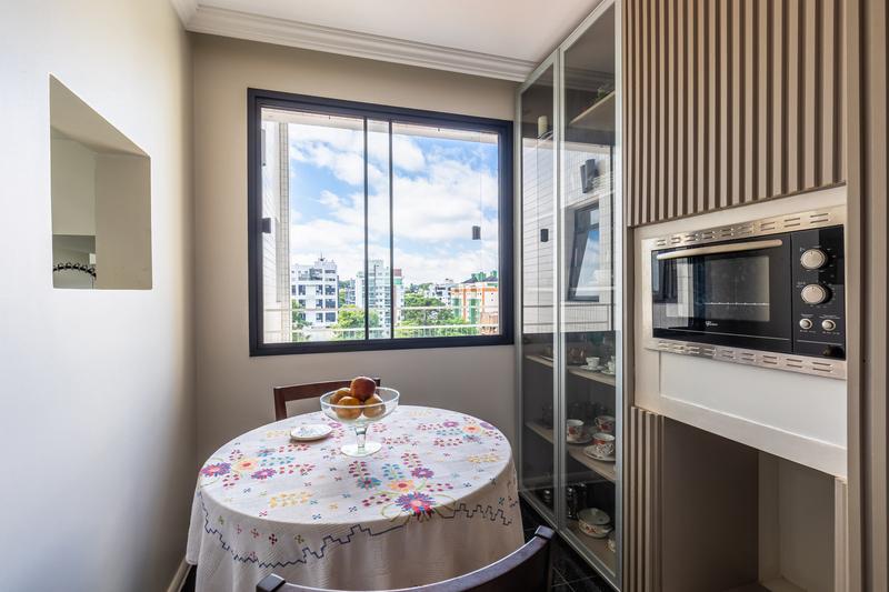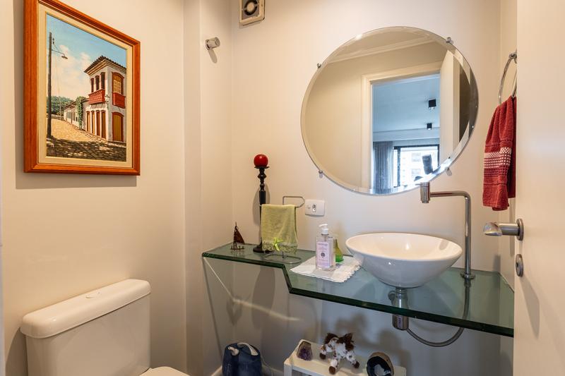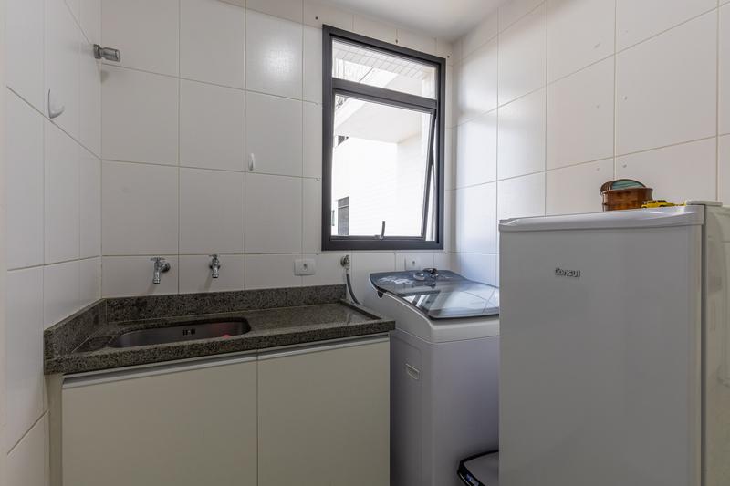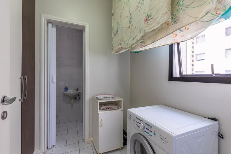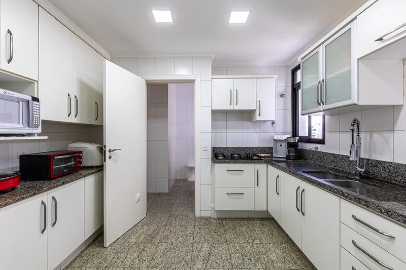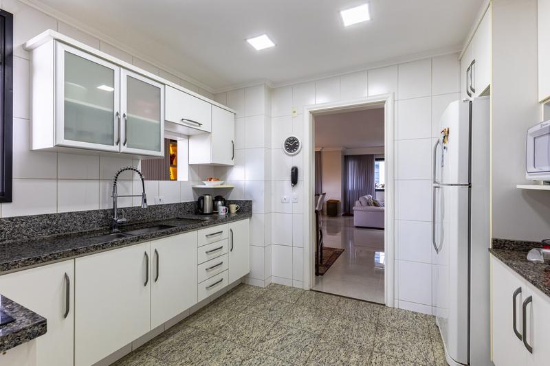 A cozinha planejada dispõe de armários novos, assim como a lavanderia, que é funcional e bem equipada. Conta ainda com dependência completa para funcionário, além de entrada social e de serviço, oferecendo praticidade e privacidade.