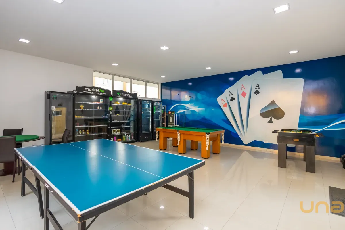 Condomínio com portaria 24 horas, academia, piscina, quadra esportiva, salão de festas, playground, salão de jogos e espaço gourmet.