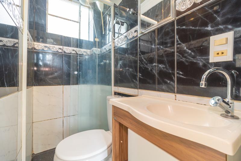 – Banheiro social com armário, blindex e chuveiro.